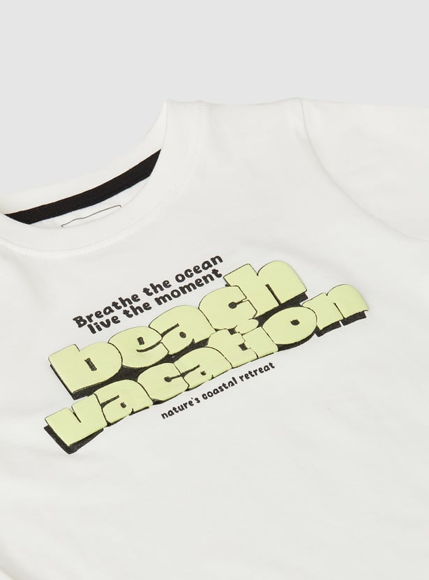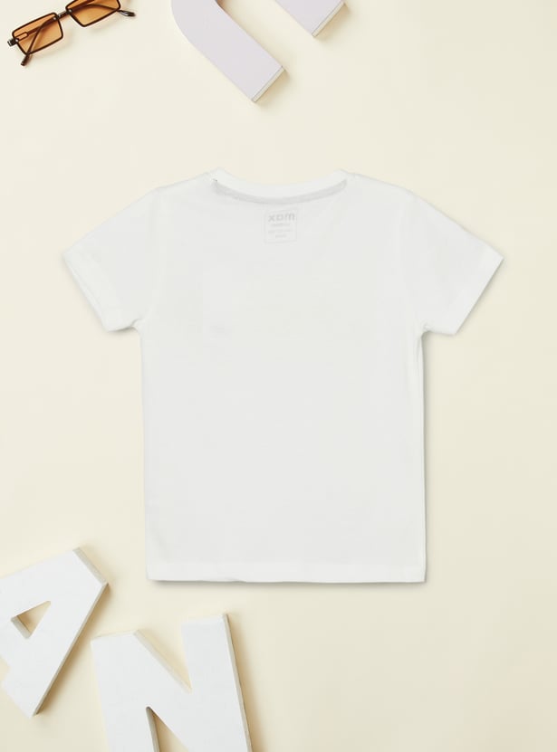 Casual and cool, this printed T-shirt features a classic crew neck and half sleeves—perfect for effortless everyday style.