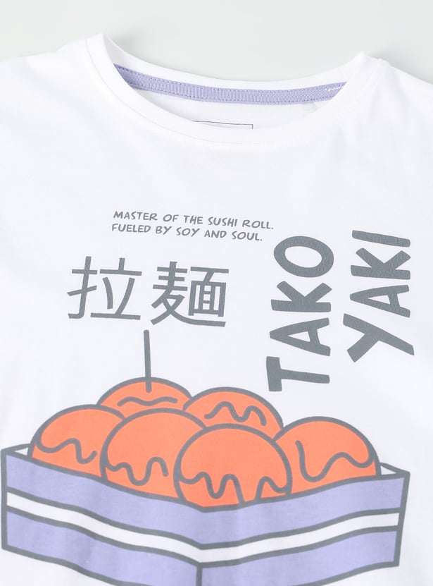 Step up your casual-cute style with this printed T-shirt, featuring a classic crew neck and easy half sleeves for an effortless everyday look.