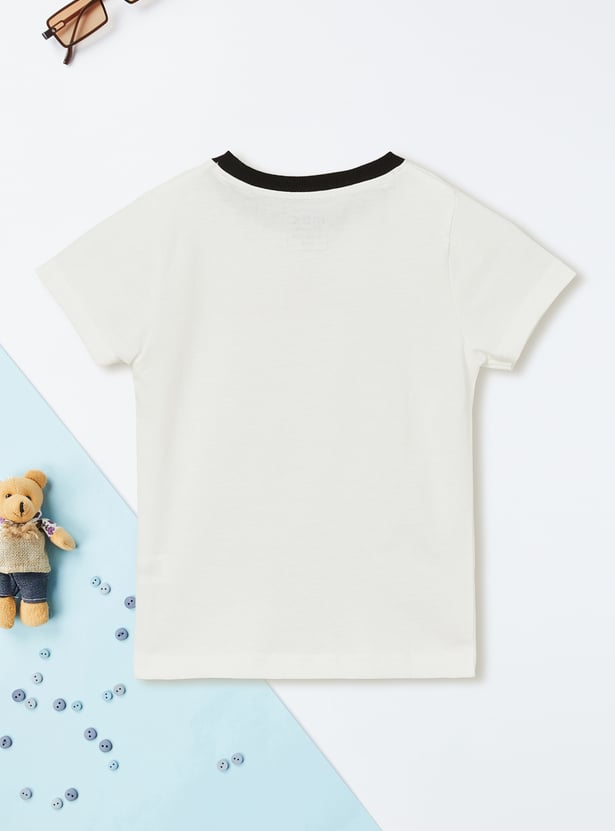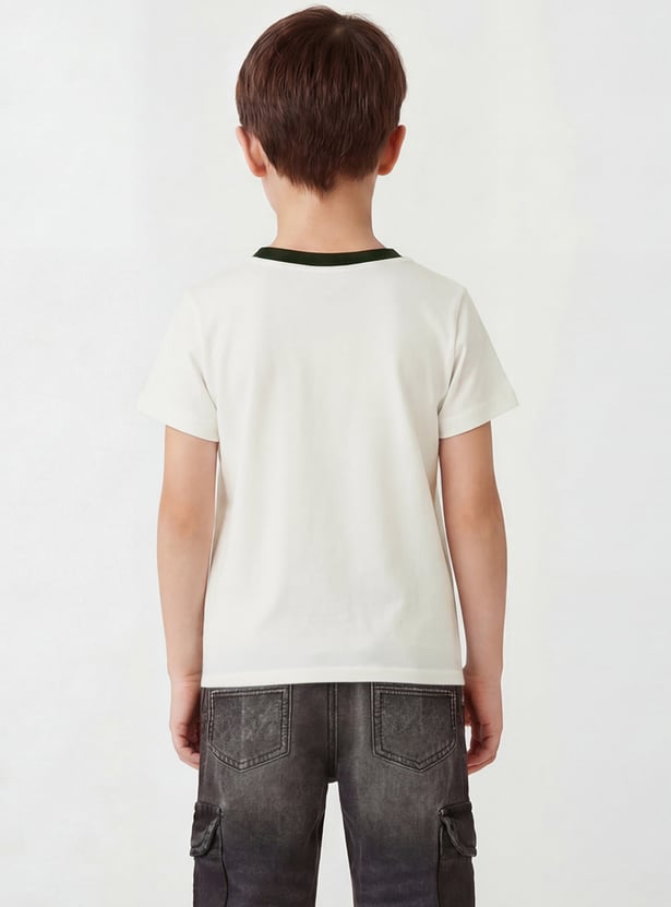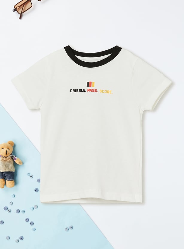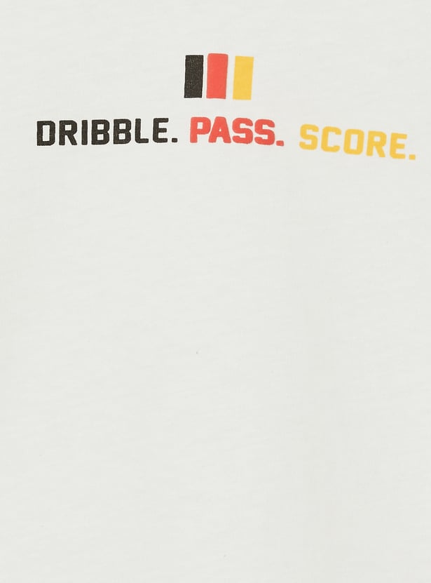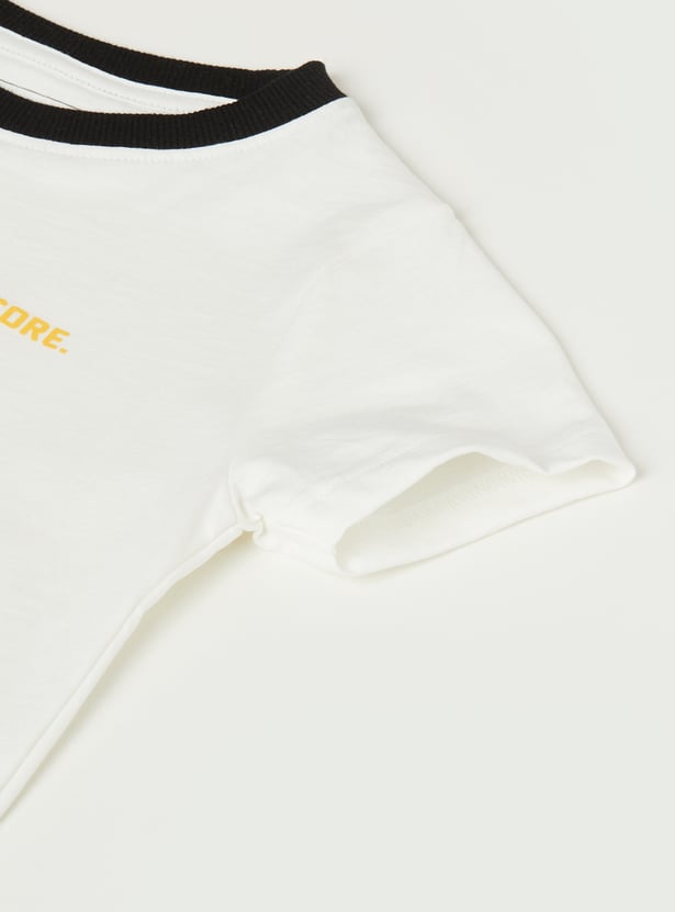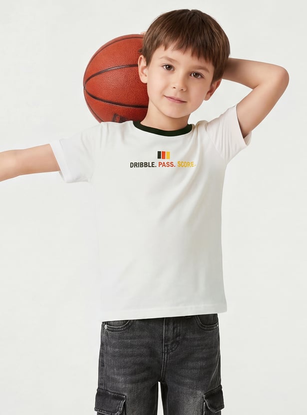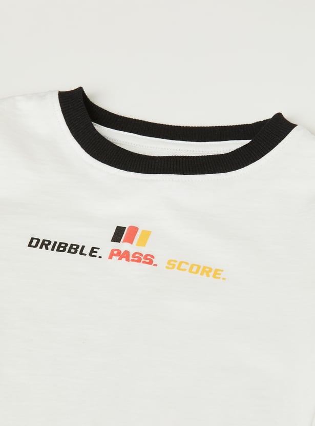 Add a sporty twist to everyday basics with this printed T-shirt. Designed with a contrasting crew neck and comfortable half sleeves, it features a bold typography print on the chest for a cool, standout look.