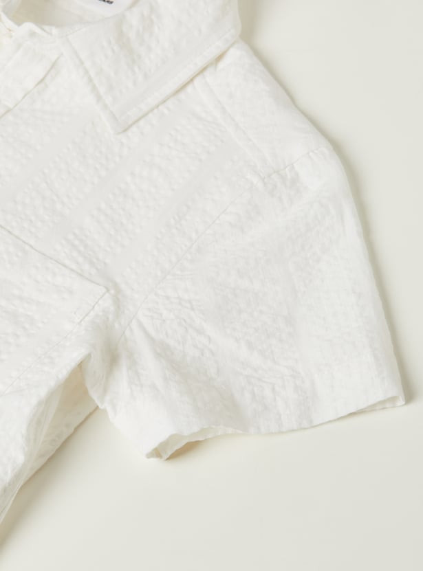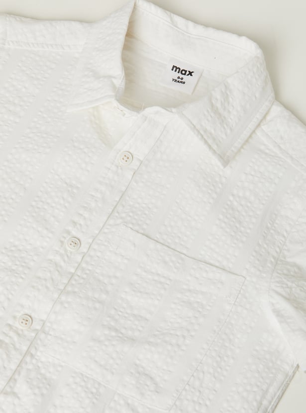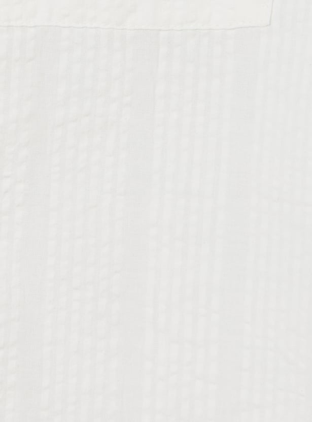 This seersucker shirt features a classic spread collar, half sleeves, and a clean button-down front for a relaxed yet polished silhouette. Finished with a single chest pocket, it’s an effortless pick for everyday outings and casual occasions.