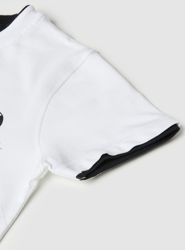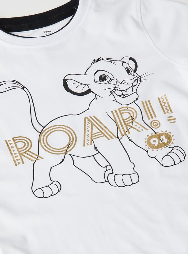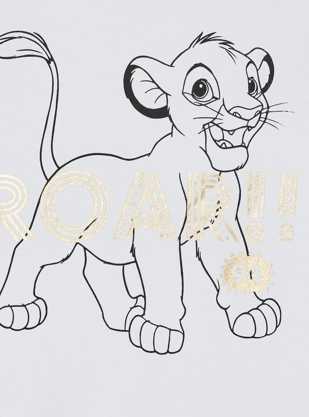 Brighten up your little one's day with this printed T-shirt that features a crew neck and half sleeves. The Simba print on the front will attract attention.