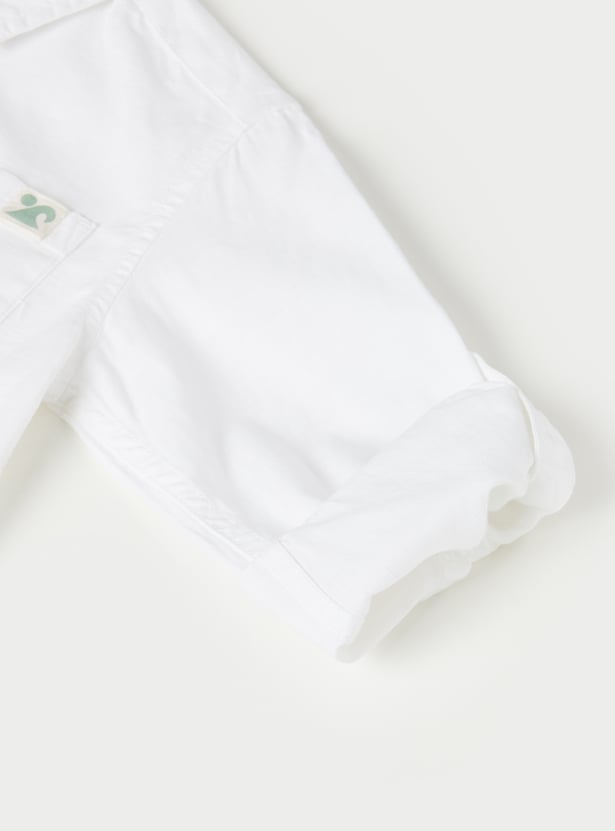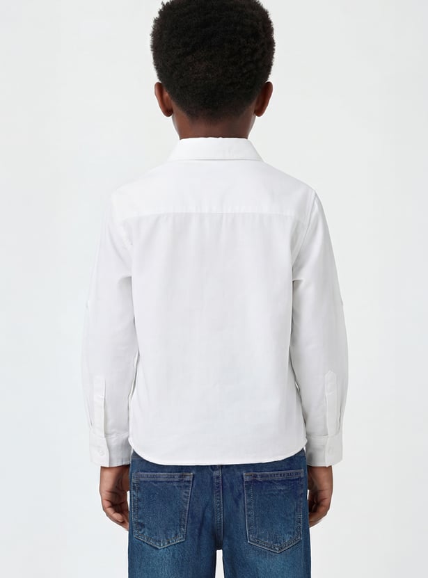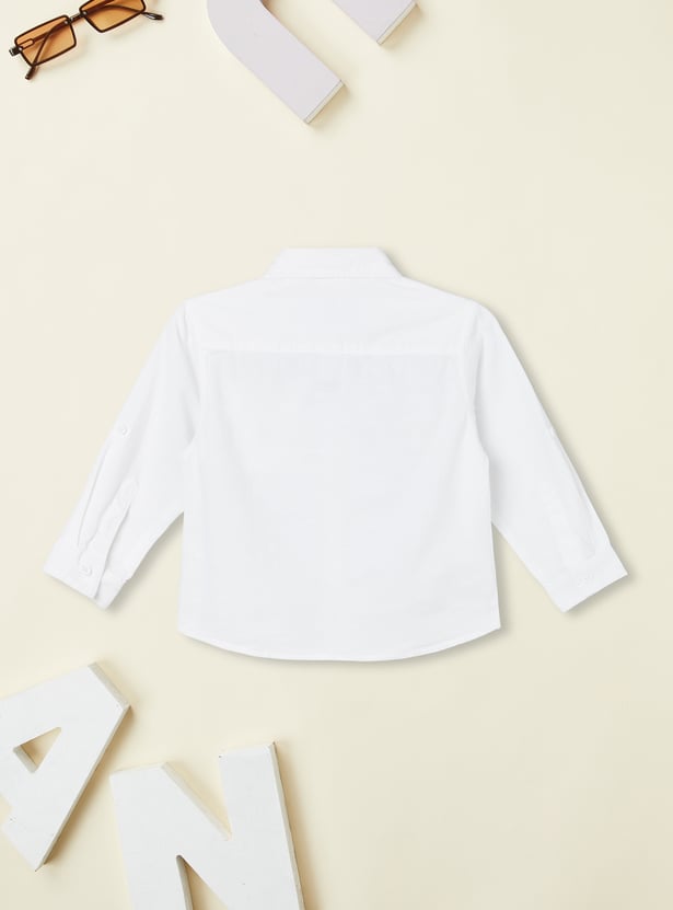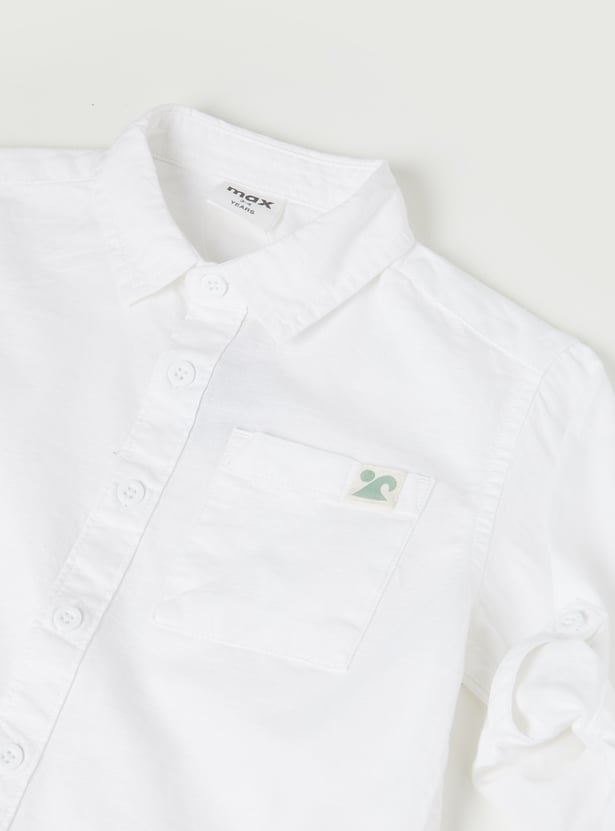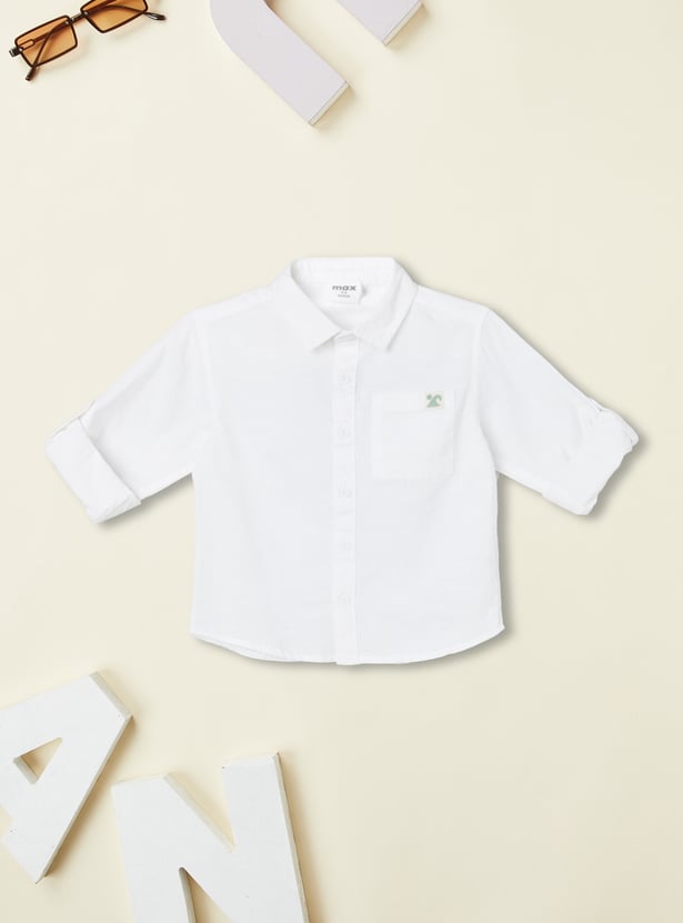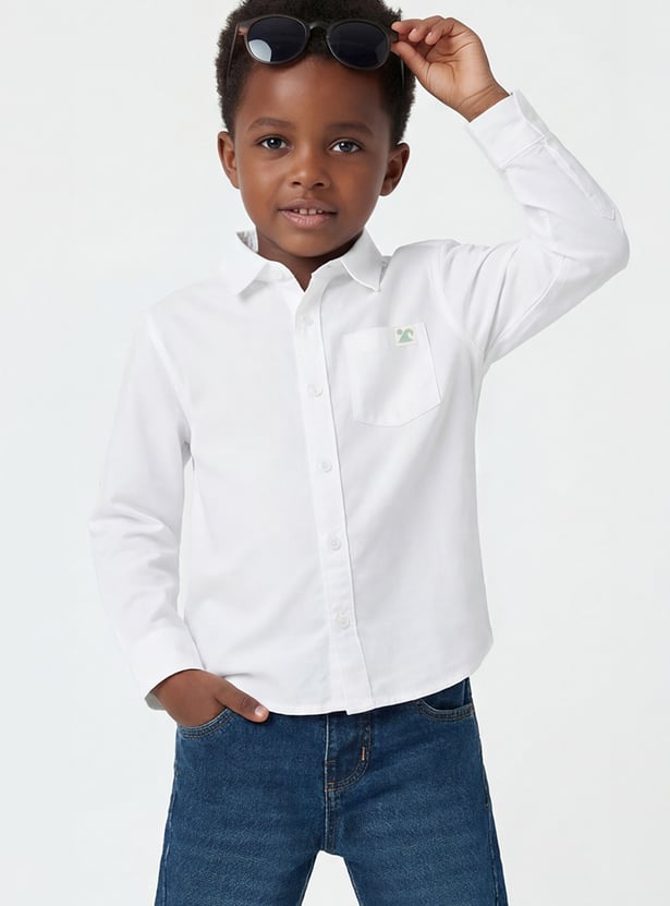 Timeless and versatile, this solid shirt features a spread collar, button placket, full sleeves with button cuffs, and a neatly placed patch pocket for added functionality and style.