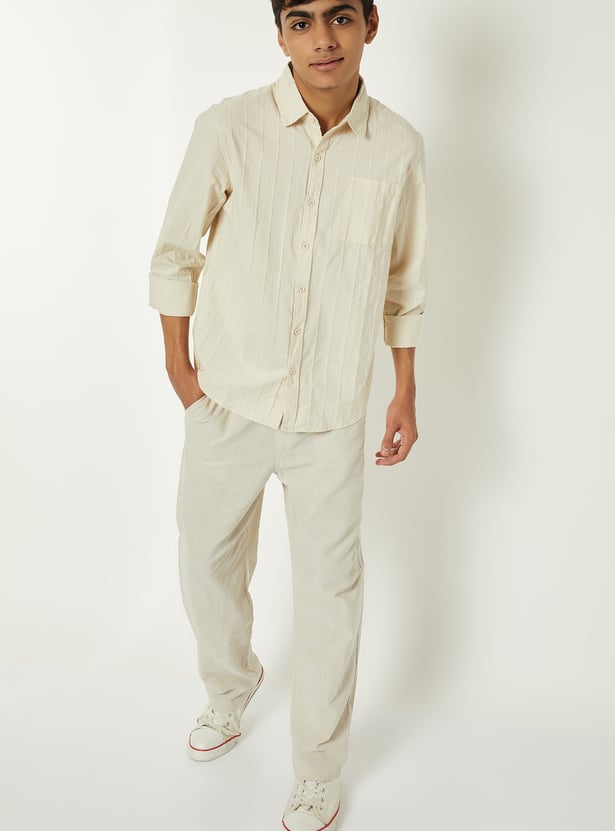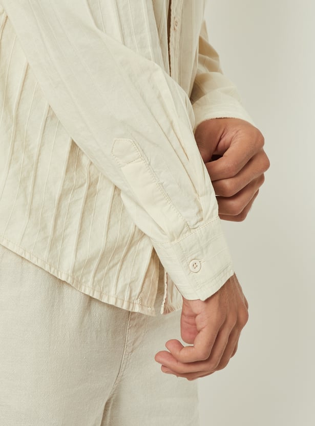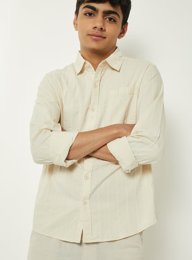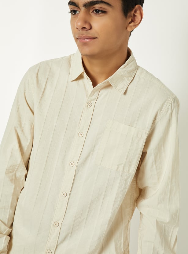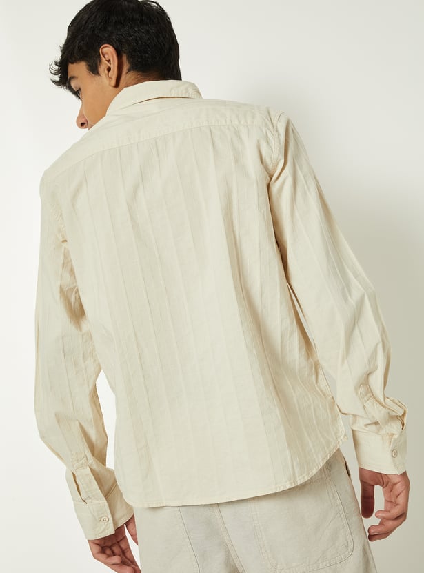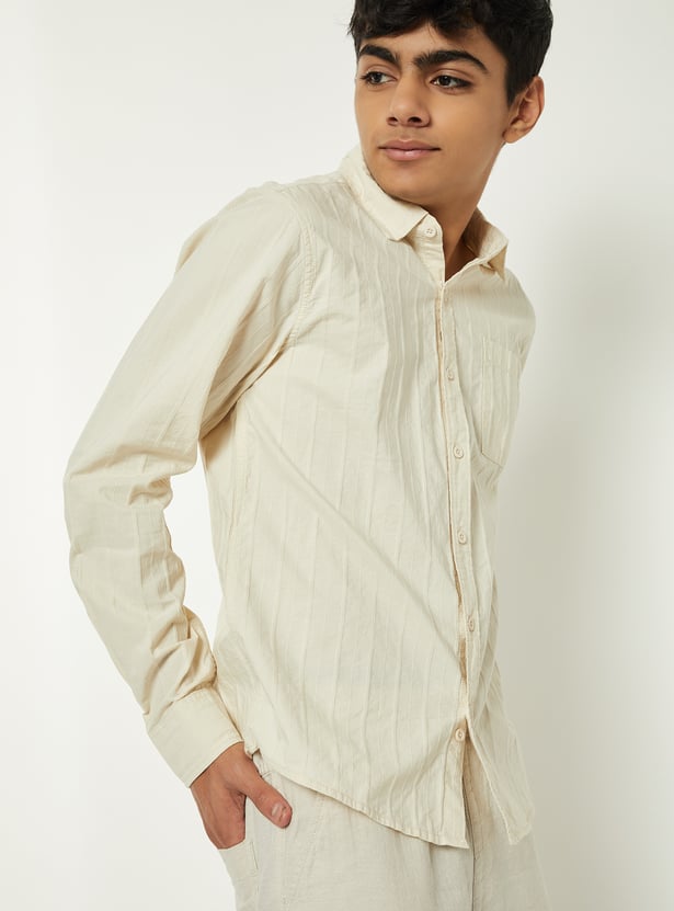 This striped textured shirt brings a refined touch to your everyday style. Designed with a spread collar, button placket, and full sleeves with buttoned cuffs, it combines classic detailing with modern texture.