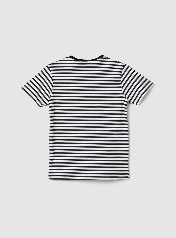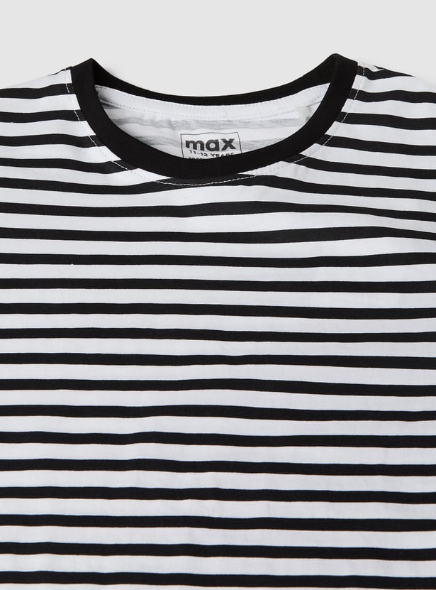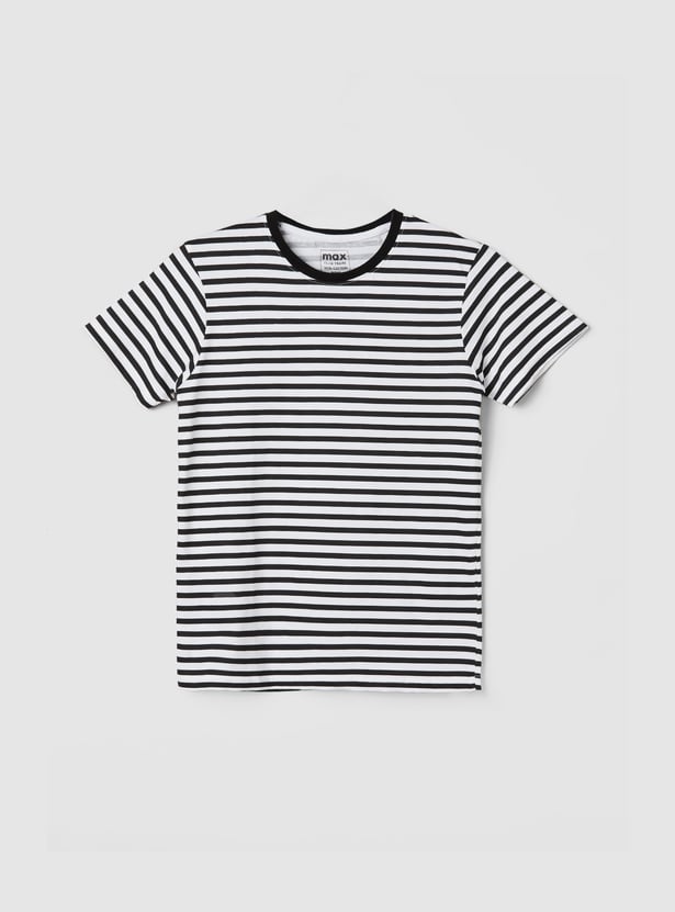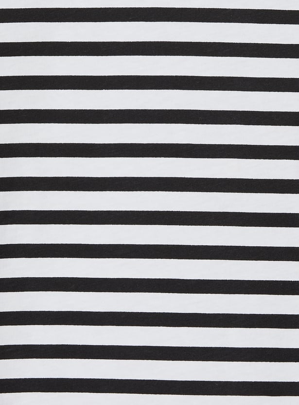 This striped T-shirt features a classic crew neck and half sleeves, offering a comfy and casual fit. The timeless stripes add a touch of style, making it perfect for everyday wear. A versatile wardrobe essential for a relaxed, chic look!