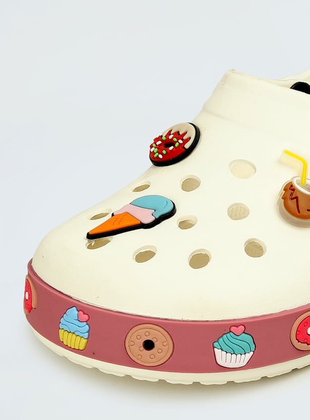 Rain or shine, these clogs elevate your kid's outfit. Featuring quick water drainage, a lightweight design, and playful charms, they're both fun and functional. With a breathable upper and waterproof EVA sole, they offer support, comfort, and durability, making them perfect for any adventure.