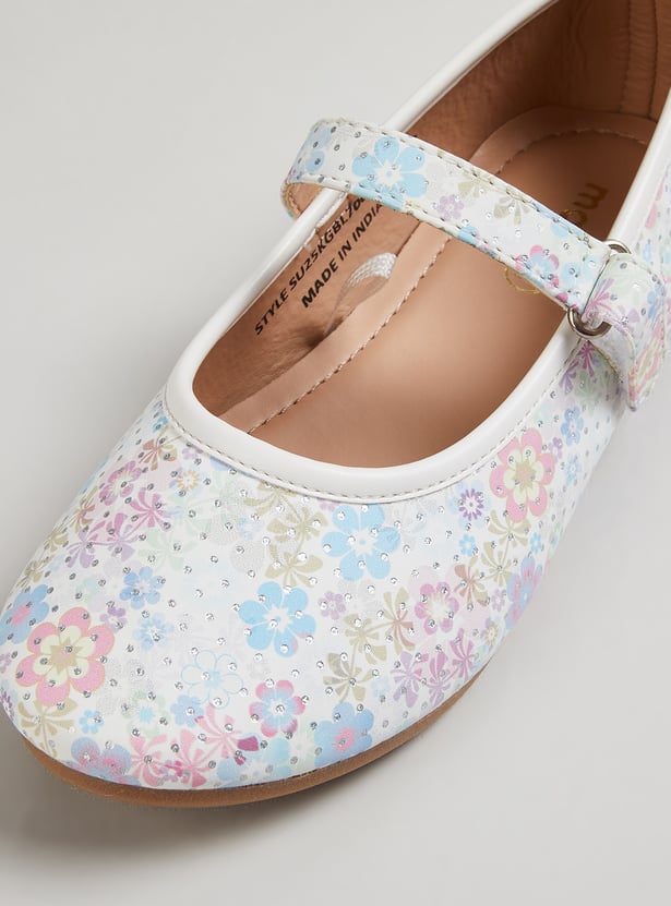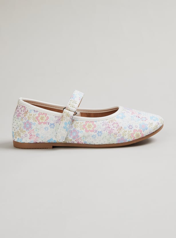 Girls Floral Print Ballerinas