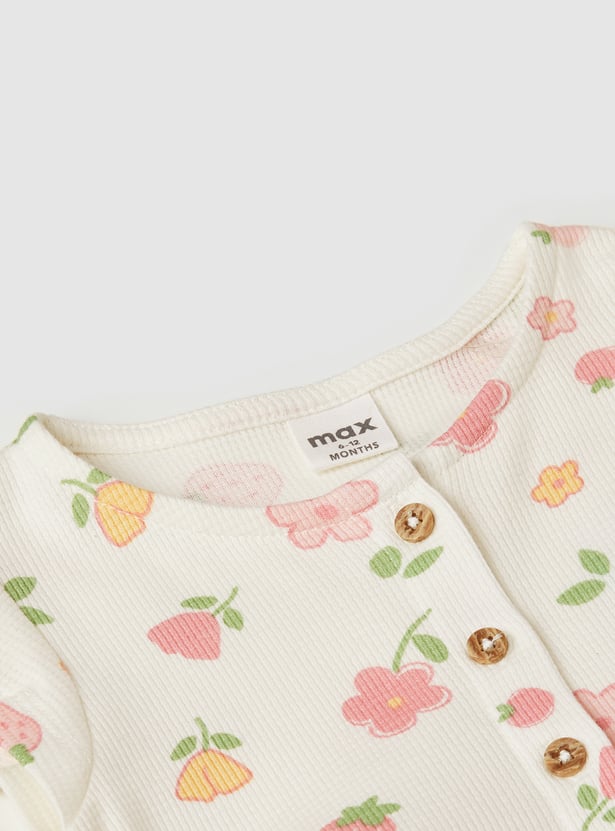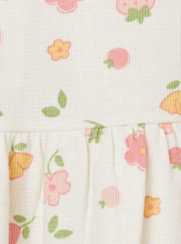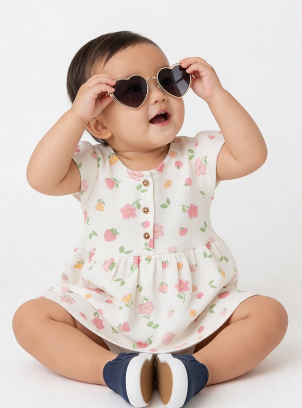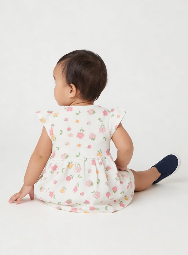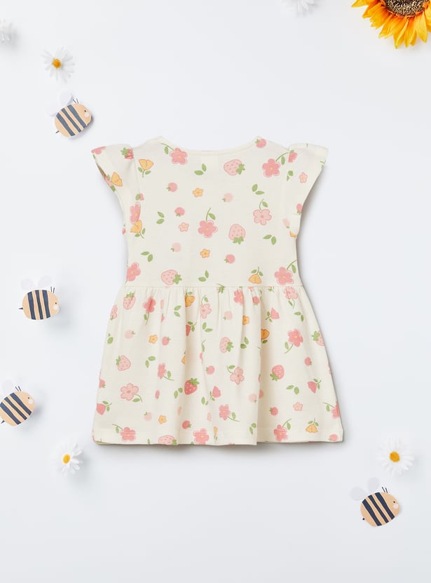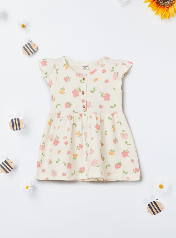 Effortlessly stylish, this floral print dress features a classic round neck, half sleeves, and a button closure for a comfortable yet chic look.