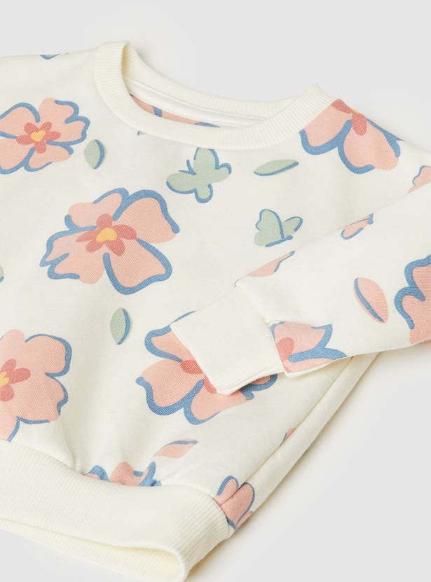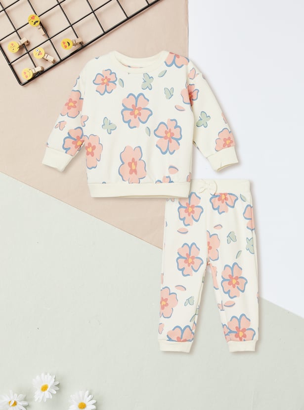 This floral print joggers set includes a soft sweatshirt with a classic crew neck and full sleeves, paired with matching printed joggers for a coordinated, laid-back look. Perfect for lounging or stepping out in style.