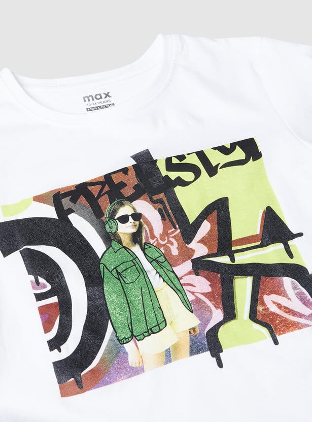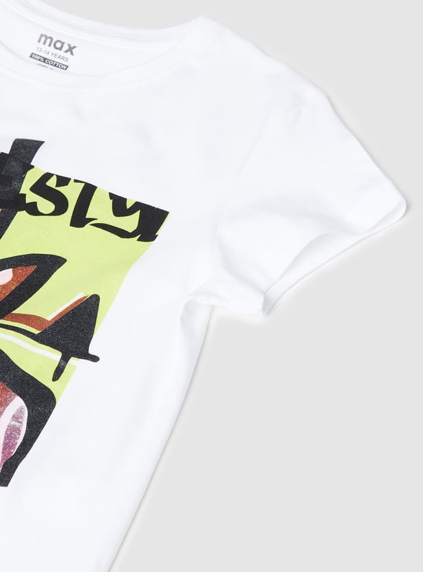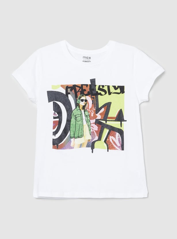 Fuel the fun and excitement with this printed T-shirt for your little girl. This T-shirt features a graphic print, round neck, and short sleeves letting your little trendsetter stand out.