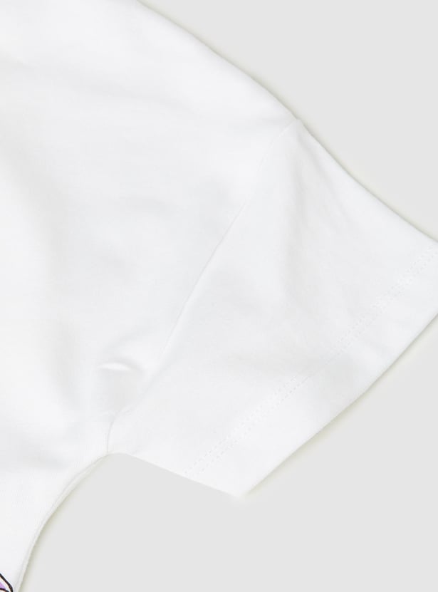 Get your little one vacation-ready with this comfortable and stylish graphic print T-shirt featuring short sleeves and a round neck.