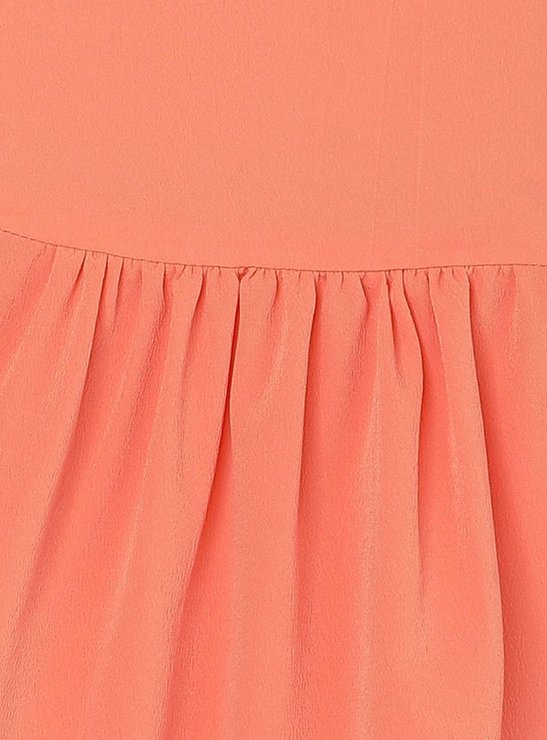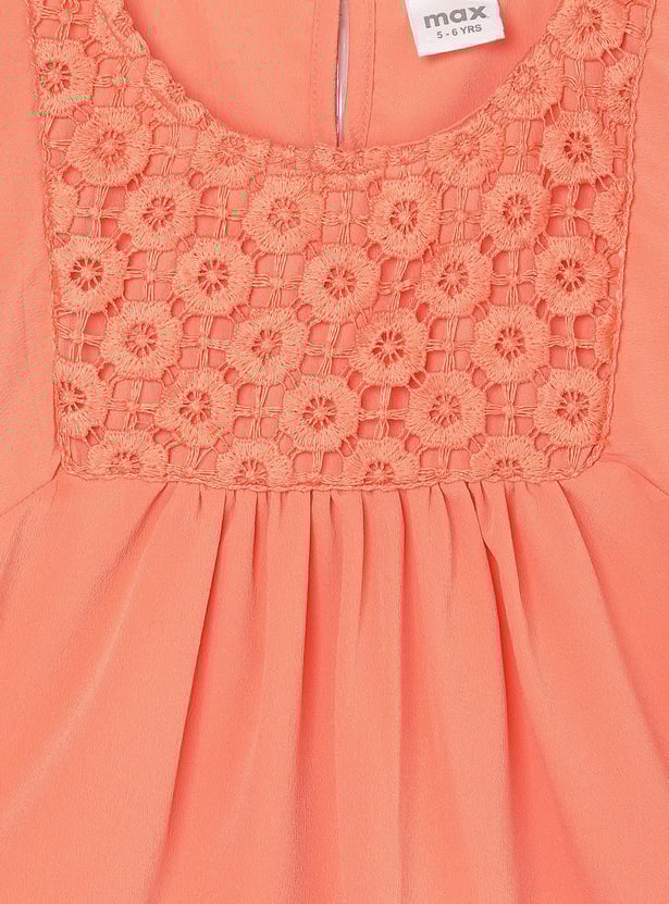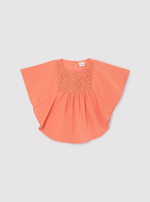 Elevate your kid's casual wardrobe with this fashionable poncho top, which has a lace at the yoke, a round neck, extended sleeves, and a button closure.