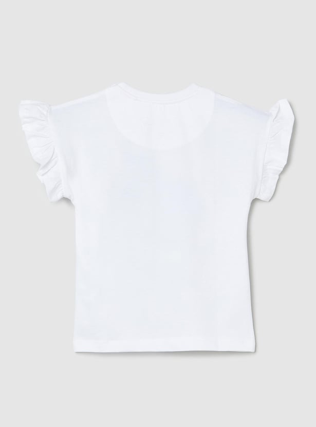 Elevate your little one's style with this adorable kid's t-shirt, featuring a playful Lilo & Stitch print. With its round neckline and charming half sleeves adorned with ruffles, it adds a touch of whimsy to any outfit.