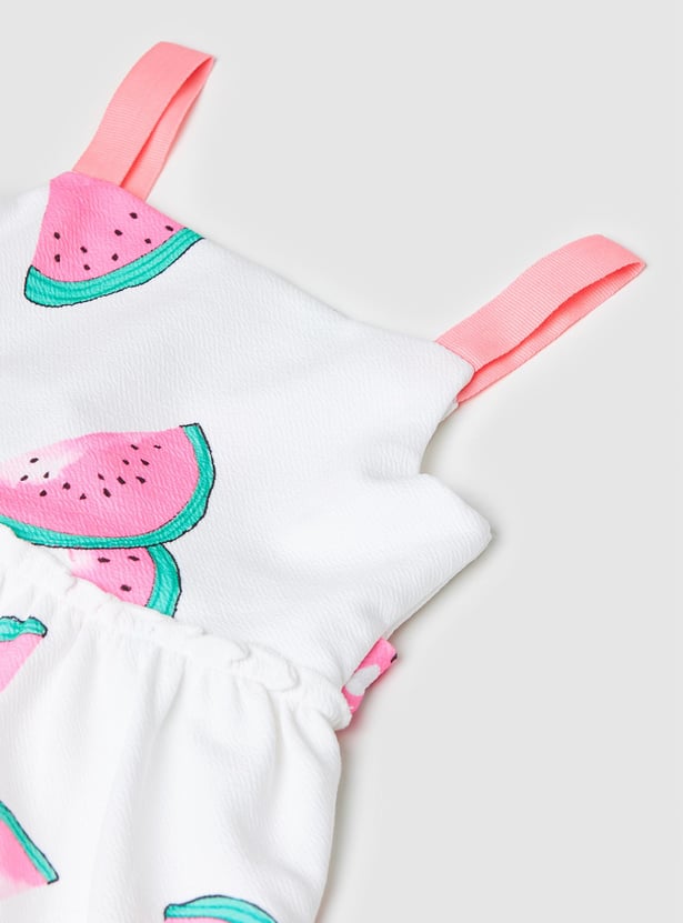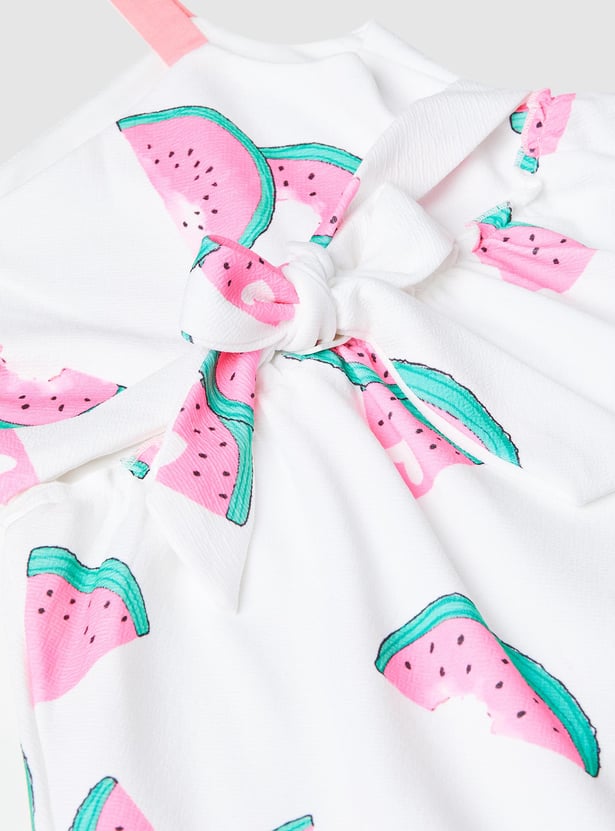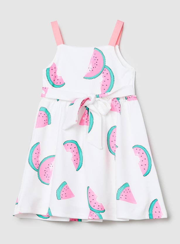 Turn your little girl's playtime into a fashion fiesta with this printed a-line dress. Featuring all-over prints with shoulder straps and a tie-up closure at the back.