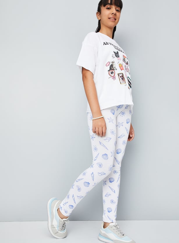 Girls Printed Skinny Fit Leggings