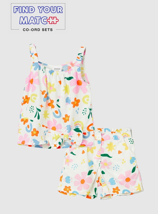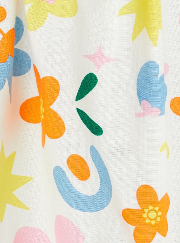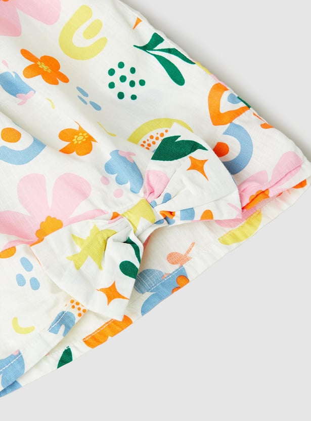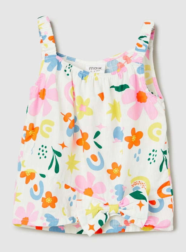 Introduce fun and fashion into your little one's wardrobe with this top. The all-over prints lend a vibrant flair. This top is styled with shoulder straps and a bow accent at the hem.