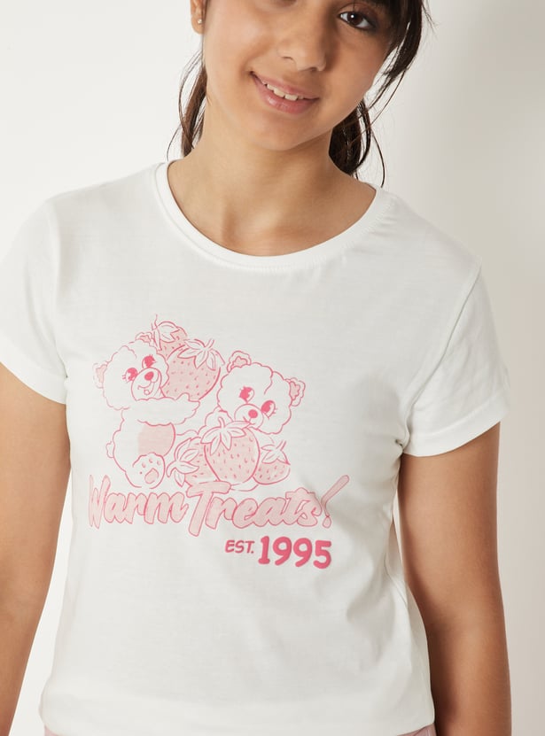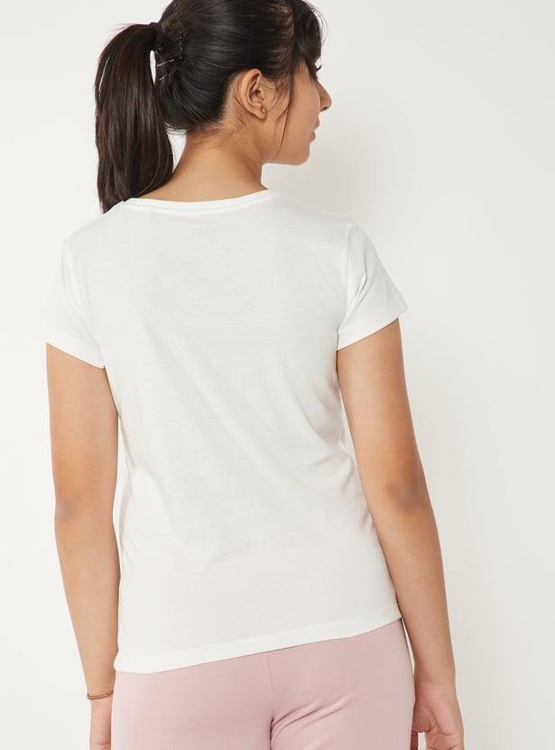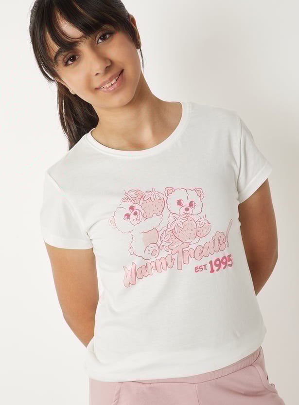 This printed T-shirt features a round neck and half sleeves, giving it a classic and versatile look. Designed for everyday comfort, it pairs well with a variety of casual outfits.