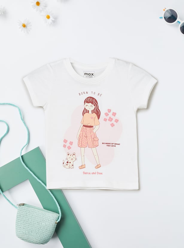 Make a bold statement with this T-shirt. Designed with a classic round neck and comfortable half sleeves, it features a relaxed look for easy everyday wear. The front print adds a fun and standout touch.
