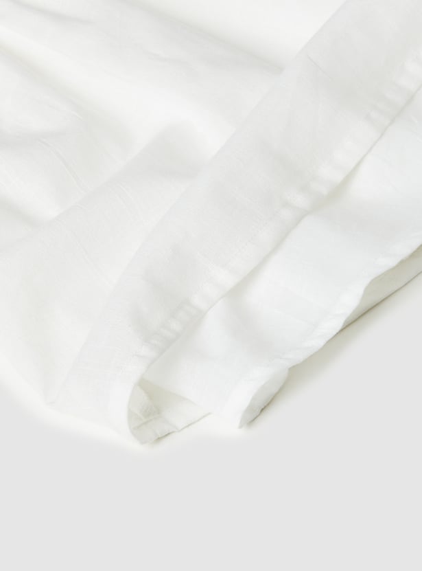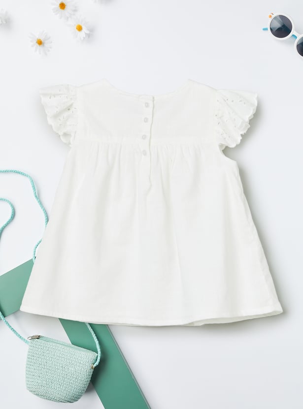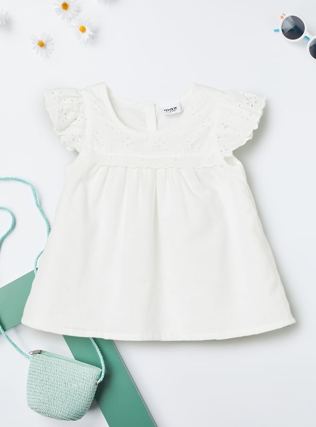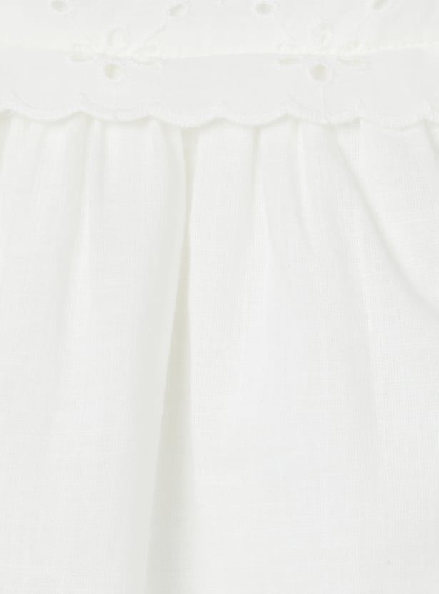Elegant and timeless, this Schiffli A-line top combines delicate embroidery with a flattering silhouette. Featuring a round neck, half sleeves, and a button closure, it offers a graceful balance of comfort and sophistication.