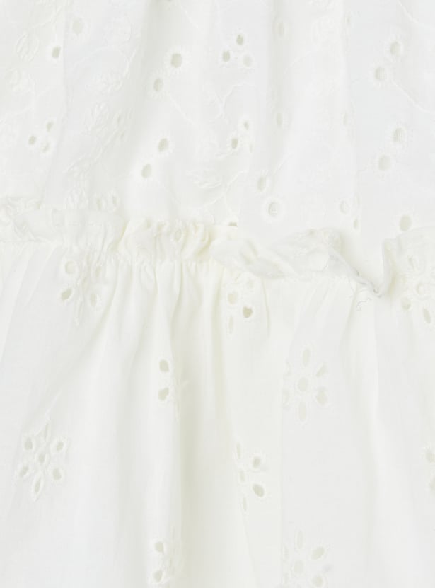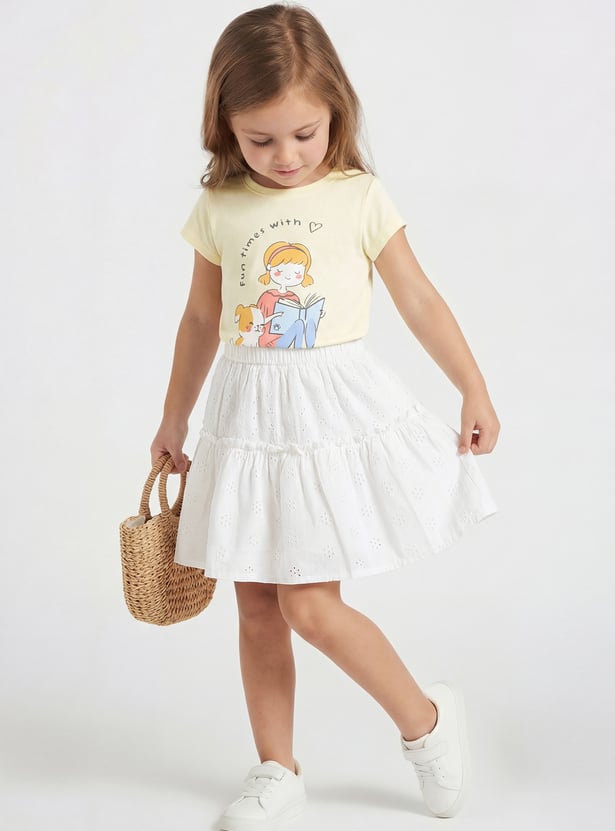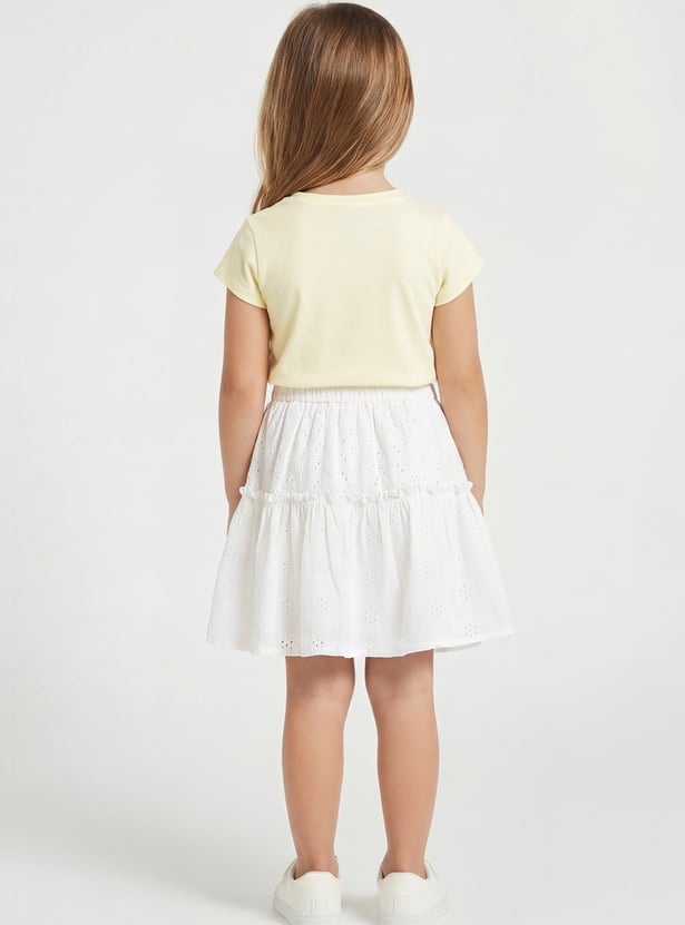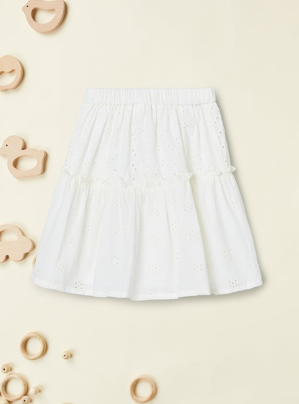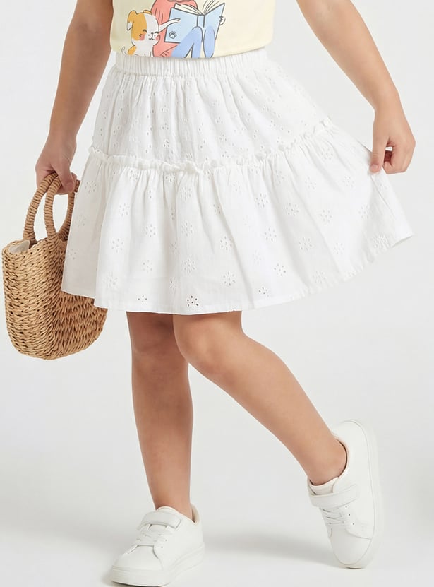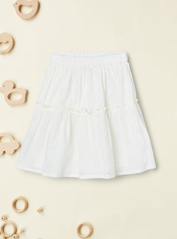 Add a touch of effortless charm with this schiffli A-line skirt. Designed with an elasticated waist for a comfortable fit, it showcases delicate embroidery that brings a feminine and breezy vibe.