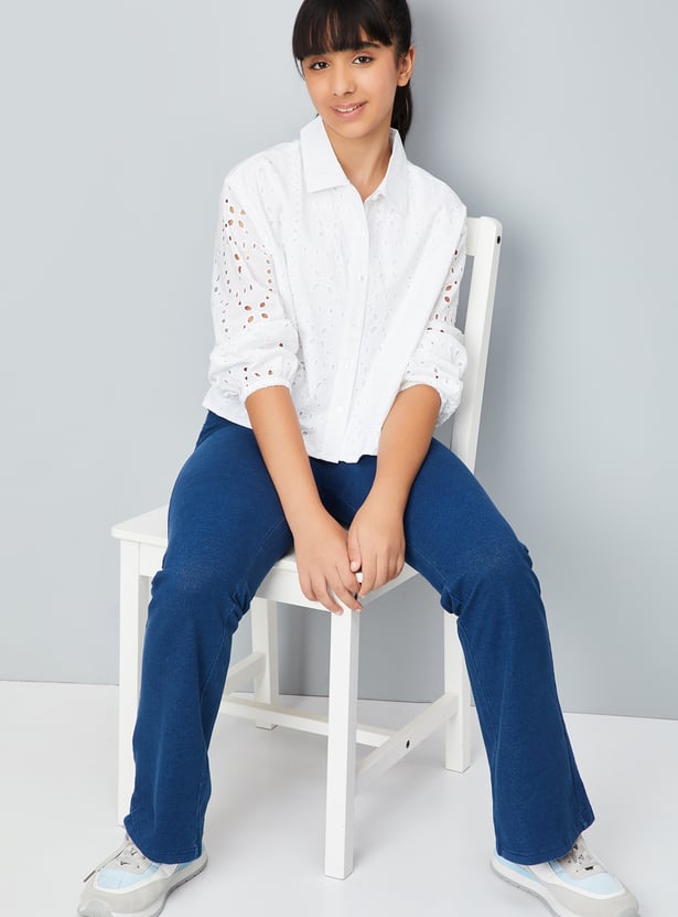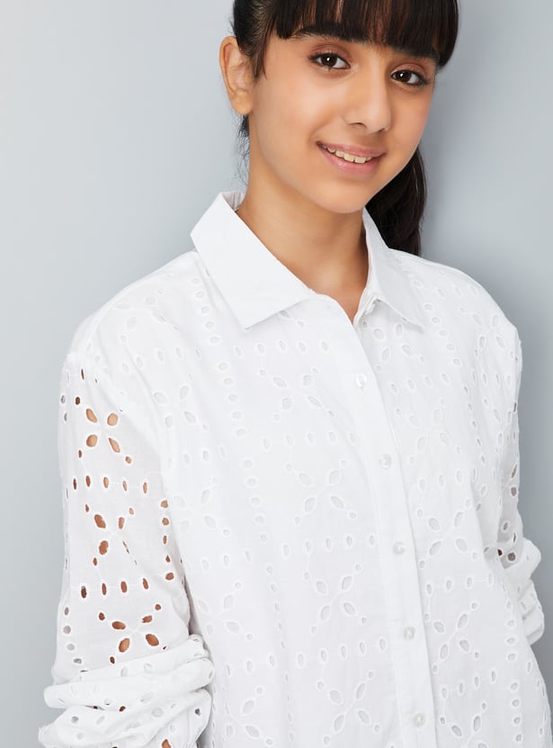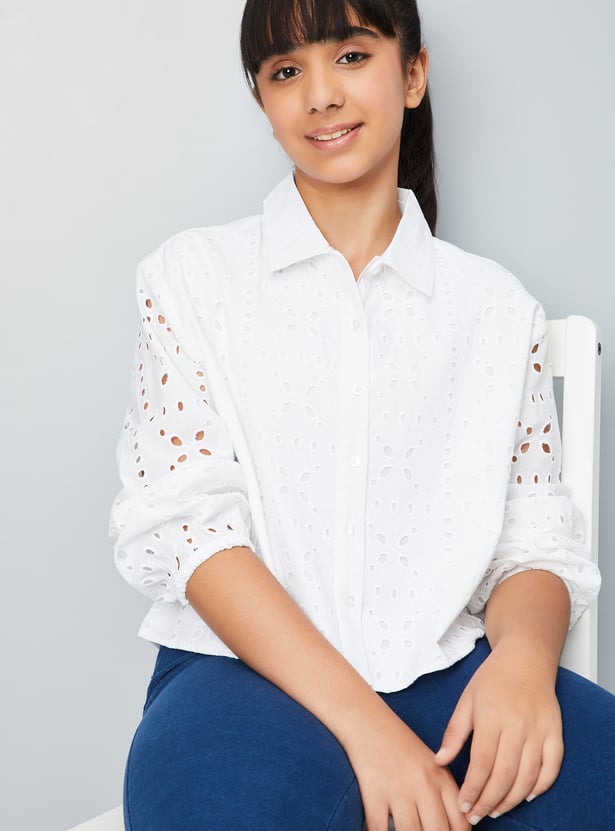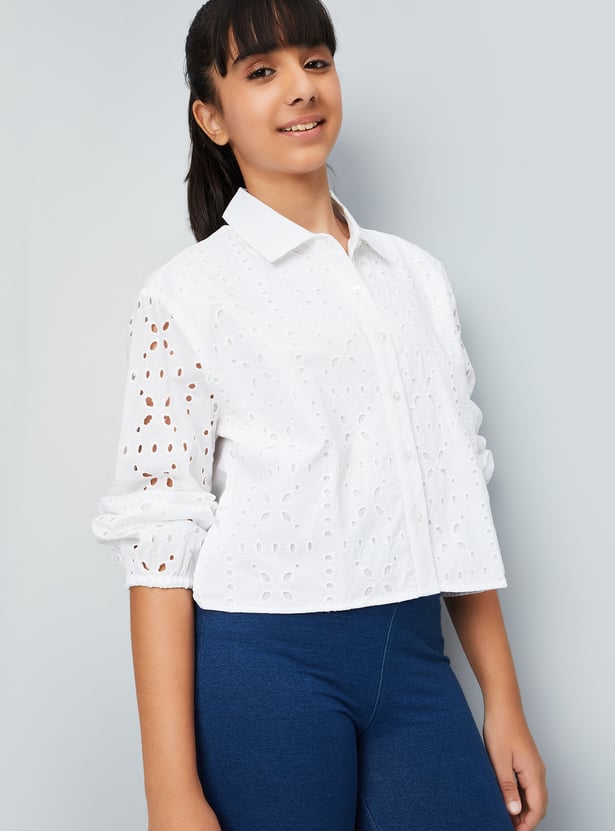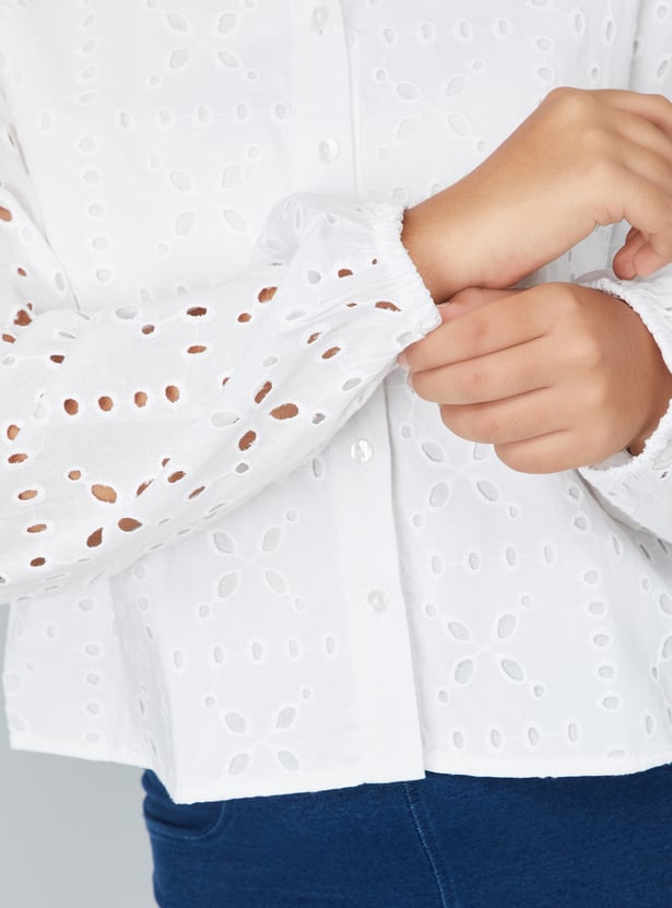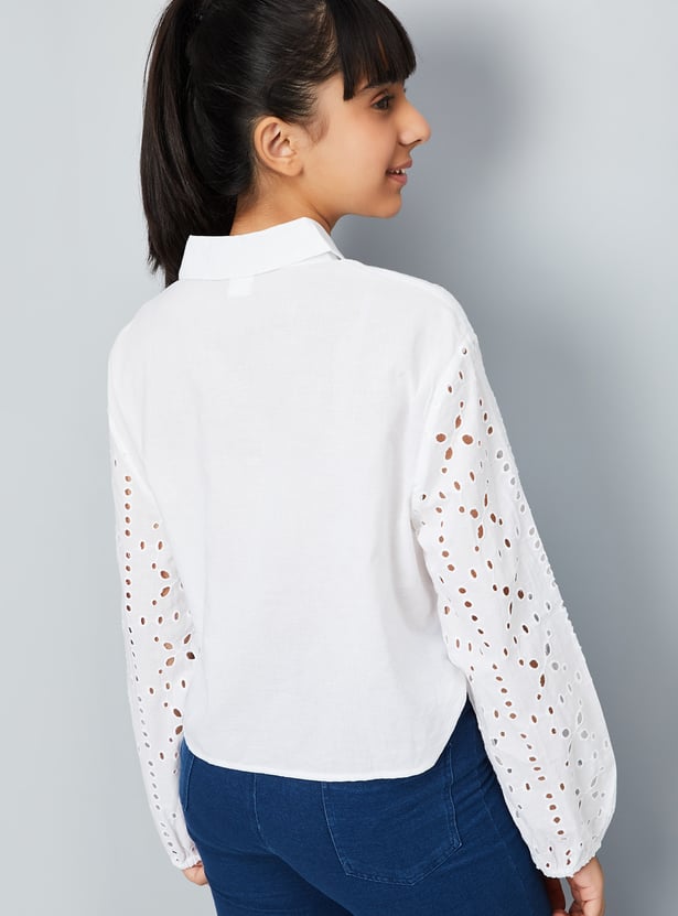 This Sciffili top combines sophistication and comfort with its spread collar and full sleeves with button cuffs.