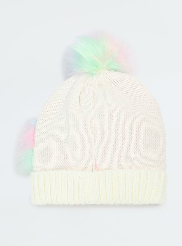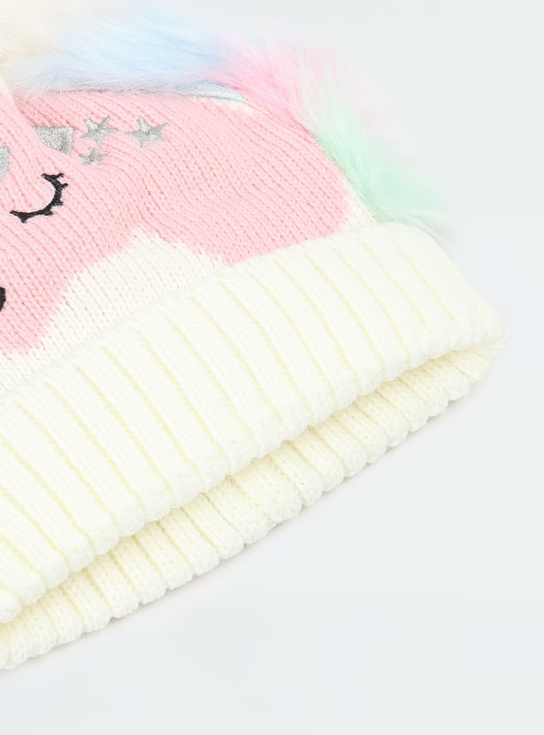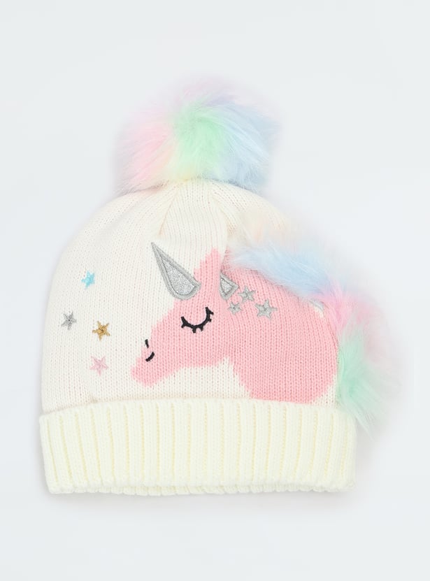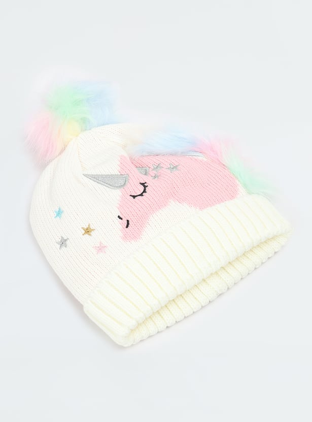 This beanie is the perfect choice for your kid this winter. Adorned with a whimsical unicorn print and topped with a playful pom-pom, it not only adds a fun touch to their outfit but also ensures they stay cosy and warm all day long.