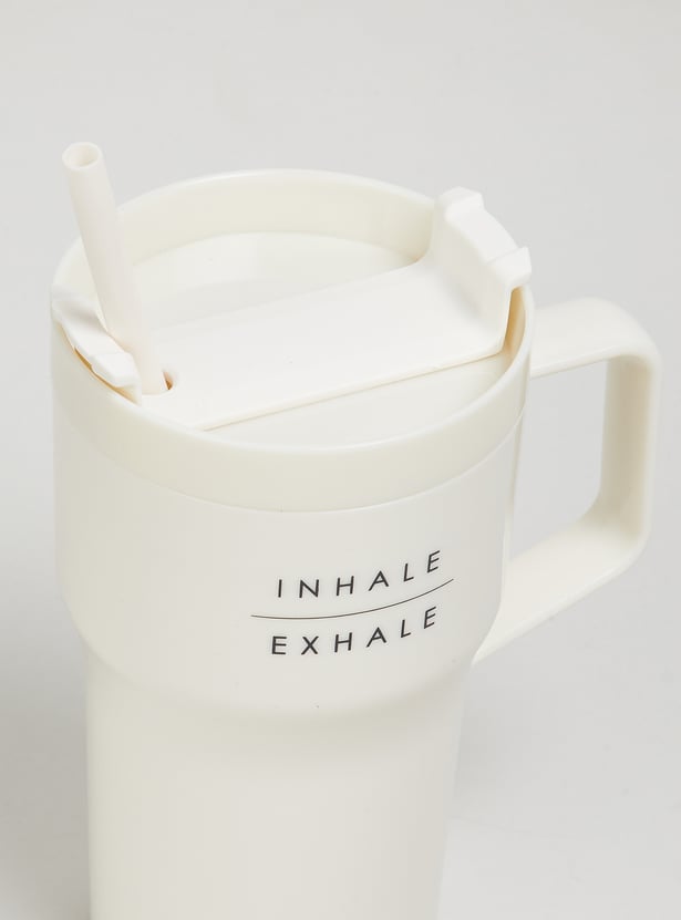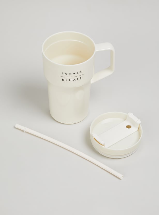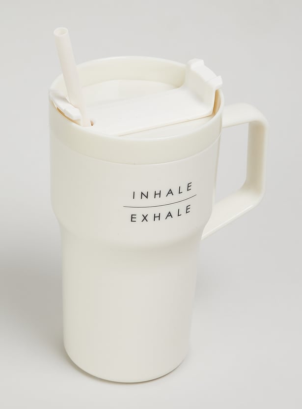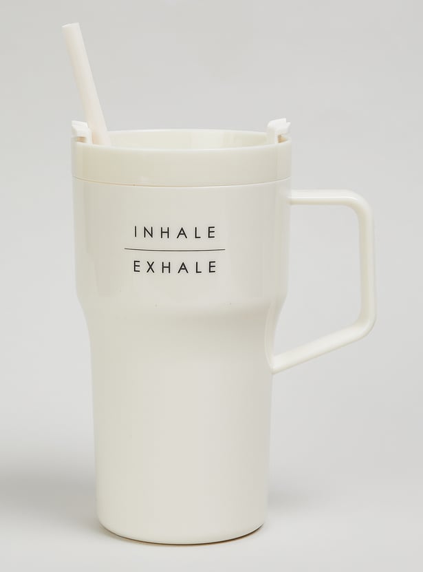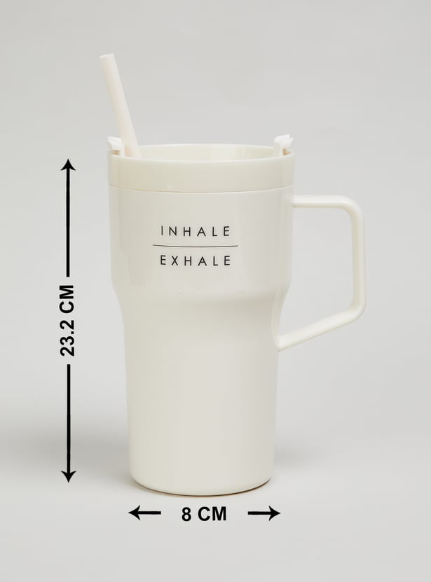 Sip in style with this sipper mug. Designed with a sturdy handle and a secure lid with a straw, it ensures easy and spill-free sipping. The minimal print adds a fun yet calming touch, making it perfect for everyday use.