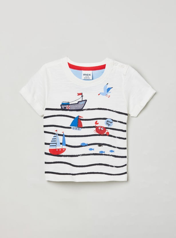 An ideal pick for your little one's casual wardrobe, this printed t-shirt is designed with half sleeves and a crew neckline.