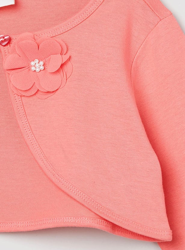 An ideal pick for your little one, this shrug features an applique detail, button closure and full sleeves.