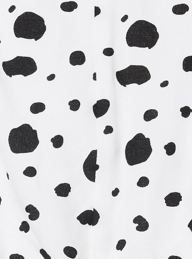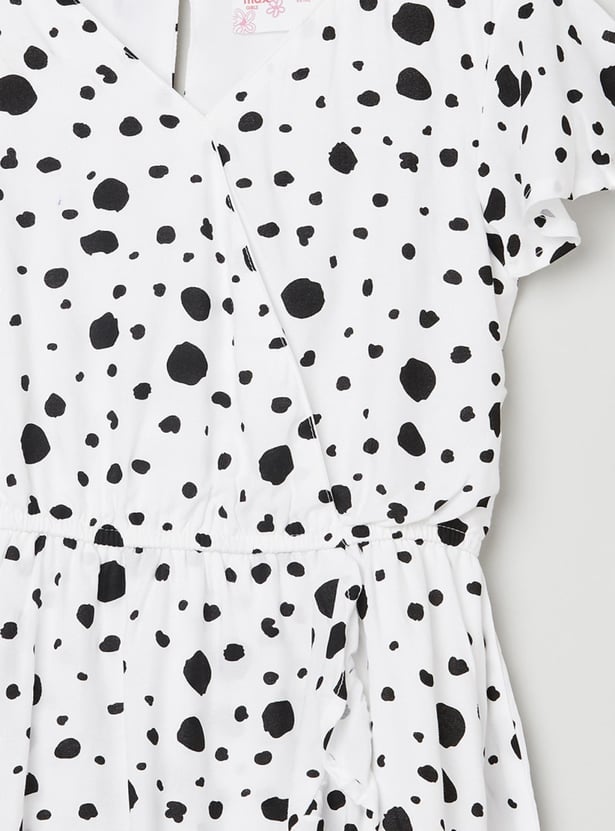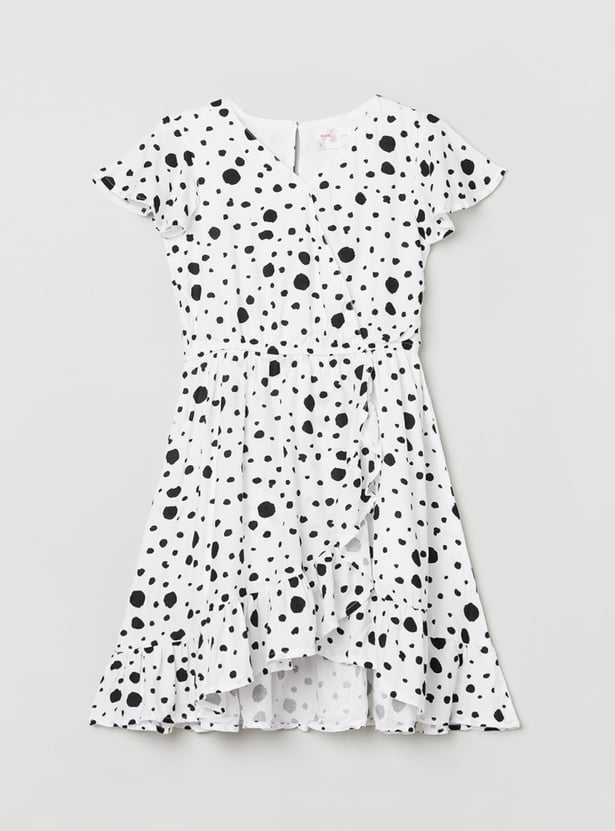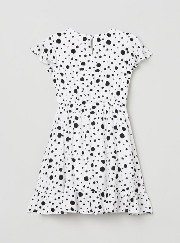 Upgrade your little diva's casual collection with this dress flaunting monochrome prints on the surface with a cap sleeves and a V-neckline.