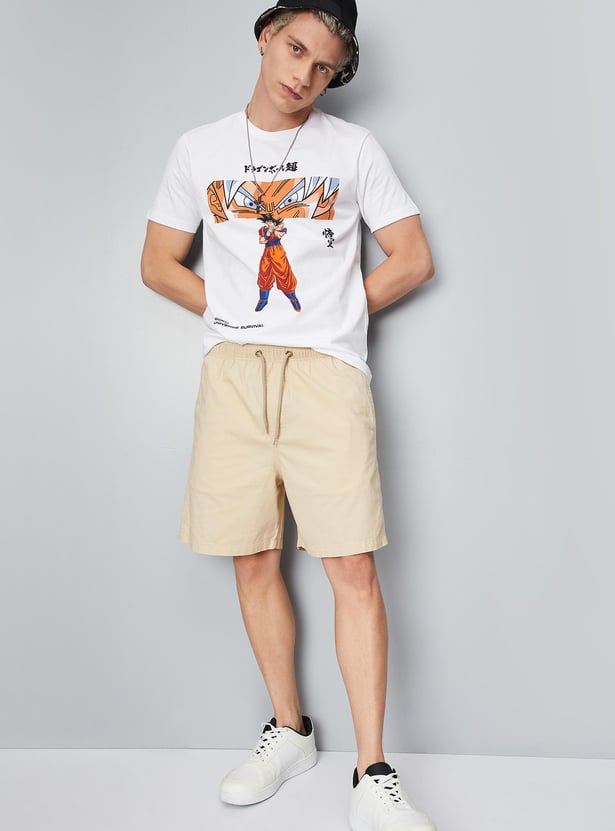Spice up your wardrobe with this Dragon Ball Z printed T-shirt. It features a crew neck and half sleeves. Team it up with a pair of shorts and lace-up shoes to complete the look.