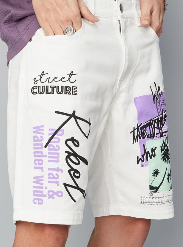Spruce up your summer styling with this pair of denim shorts. It is updated with graphic prints on the leg, a belt loop waist, and 5 pockets. Team up this pair of shorts with a tee and sneakers to ace the look.