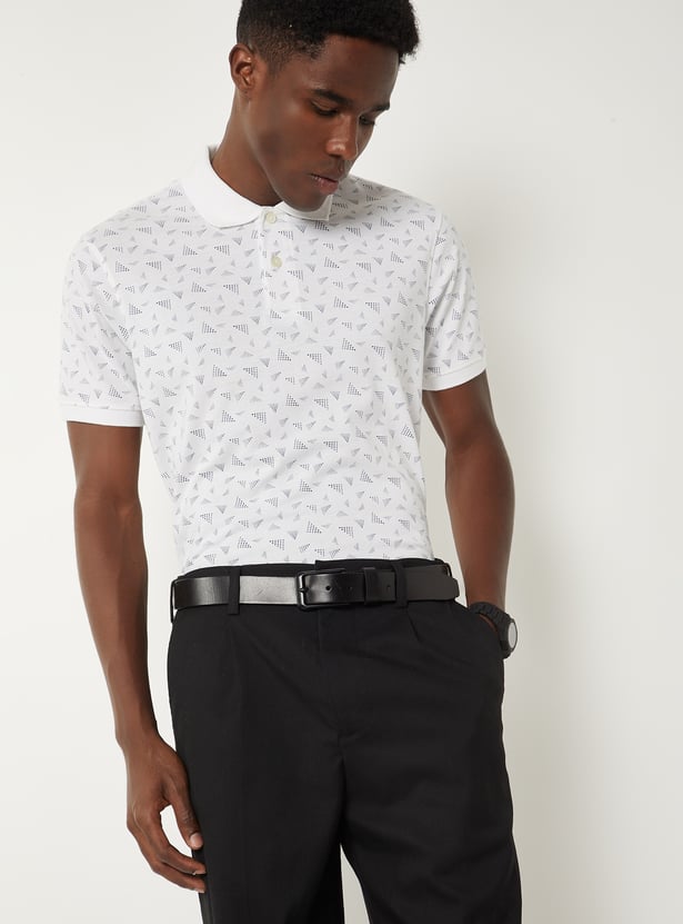 Elevate your casual style with this printed polo T-shirt. Featuring a classic polo collar, half sleeves, and a two-button placket, it combines refined comfort with timeless appeal.