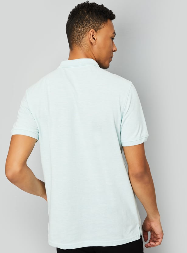 This solid polo T-shirt combines comfort and style with its collared design, half sleeves, and classic button closure. The subtle texture adds depth and interest to the traditional polo, making it perfect for both casual and semi-casual occasions.