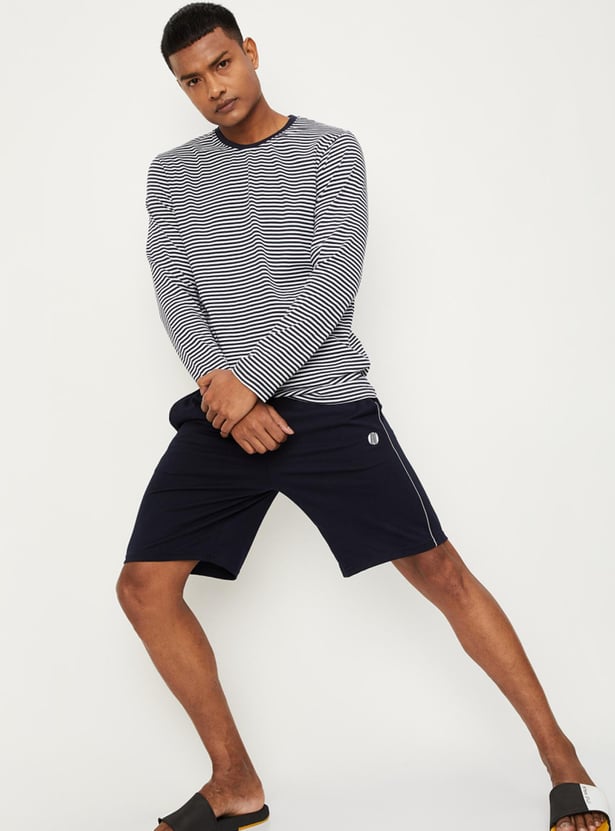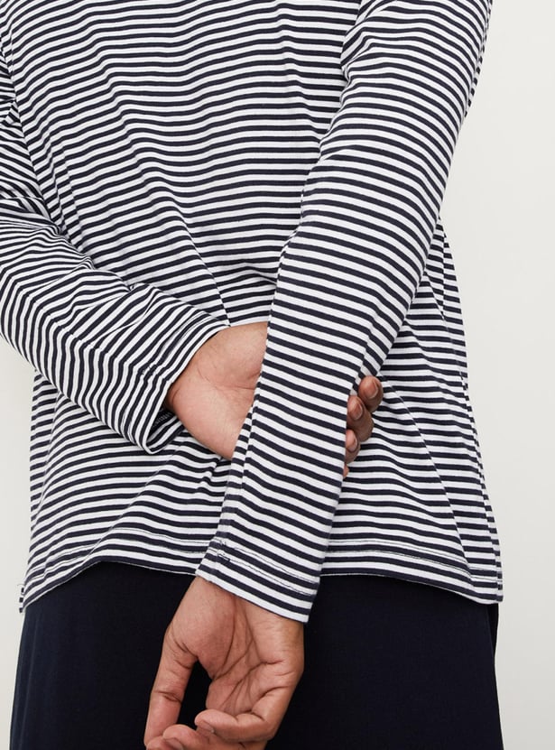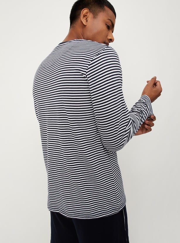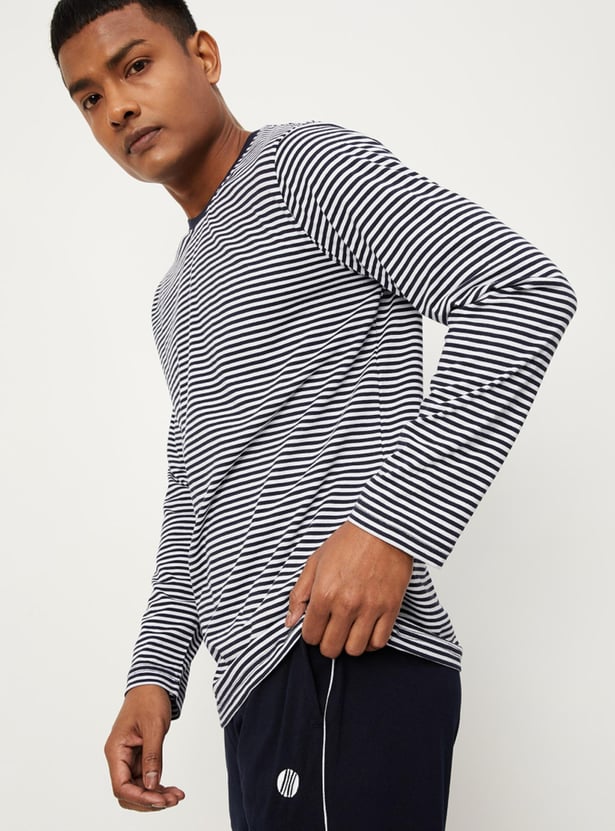 Bring nautical vibes into your basic styling with this T-shirt. It is crafted in a slim fit profile with a crew neck, long sleeves, and a striped pattern.