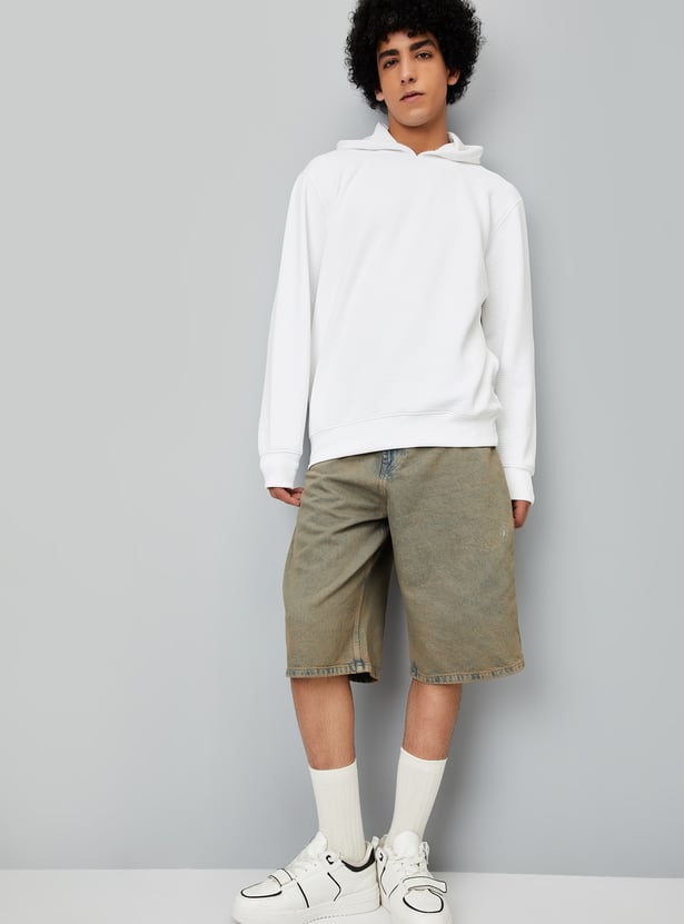 Men Textured Hooded Sweatshirt