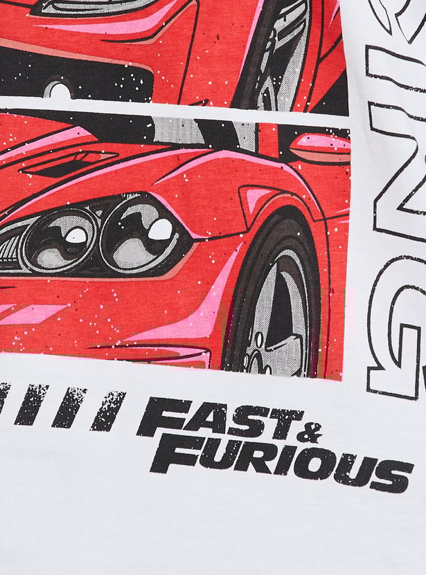 Showcase your fandom in this t-shirt that has a Fast & Furious graphic print, a crew neck, and short sleeves to accentuate your persona. Designed in an oversized silhouette, this t-shirt is versatile, making it an ideal addition to any outfit for multiple occasions.