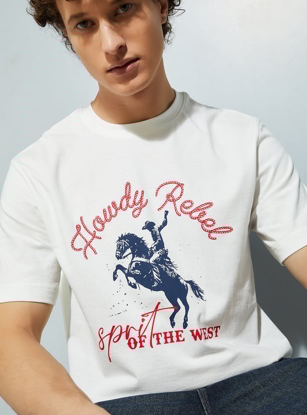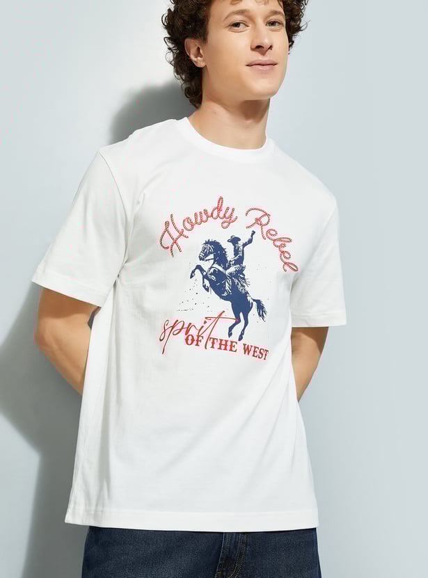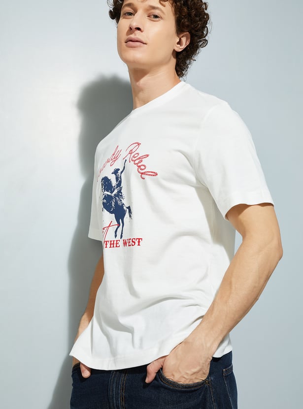 A drop that delivers style, this tee features a graphic print and a crew neck. The soft fabric ensures maximum comfort.