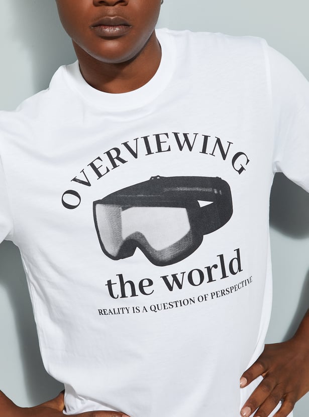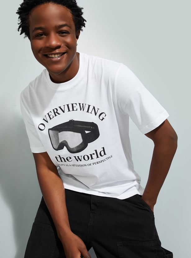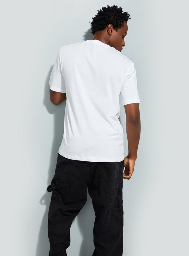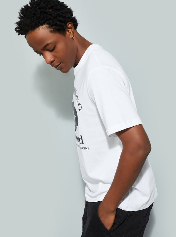 A perfect addition to your casual wardrobe, this T-shirt boasts a bold graphic print on the chest. Designed with a crew neck and half sleeves, it offers relaxed comfort and is ideal for achieving an effortless urban look.