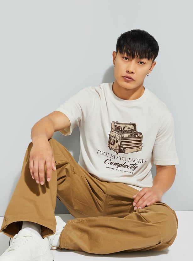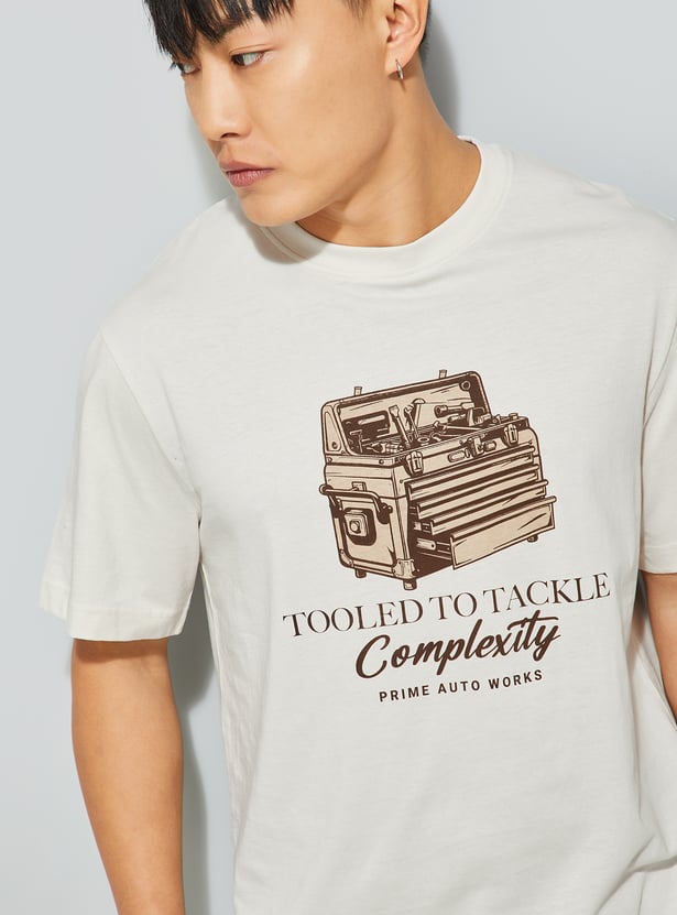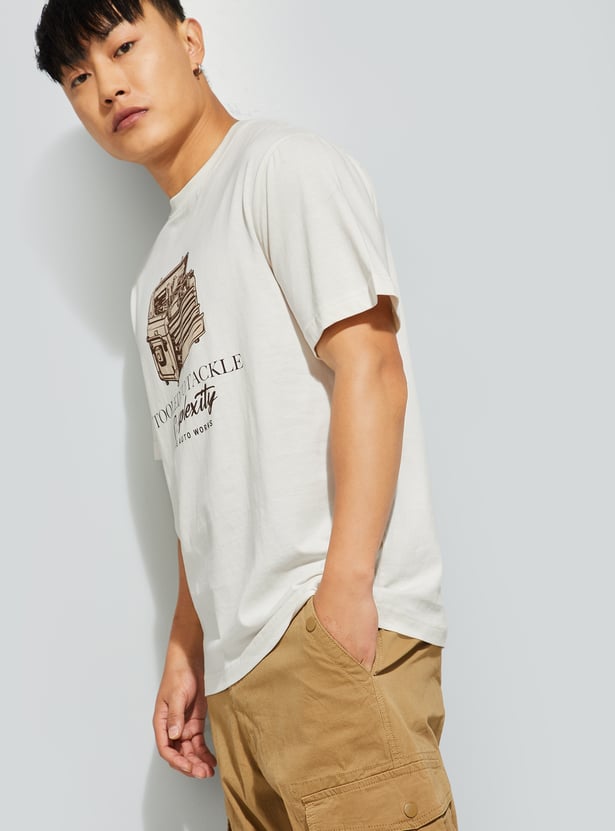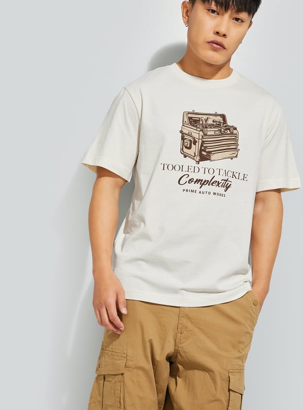 A perfect addition to your everyday wardrobe is this T-shirt highlighted with a graphic print. It features a crew neck and half sleeves.