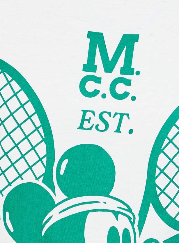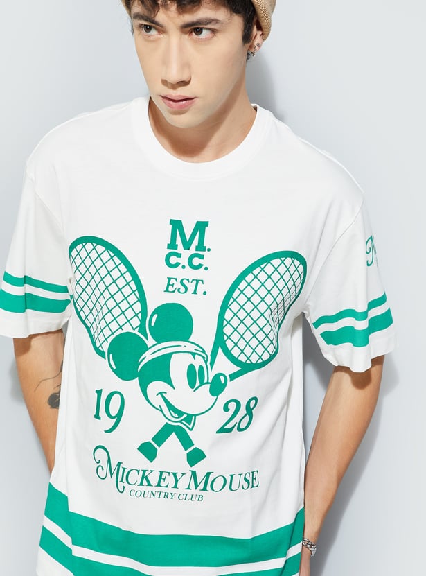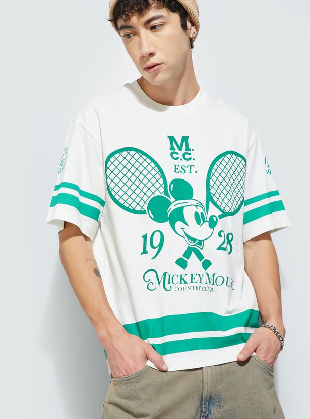 Elevate your casual wardrobe with this Mickey Mouse print T-shirt, featuring a classic crew neck and half sleeves for everyday comfort and style. The soft fabric ensures ease of movement, making it a go-to for daily wear
