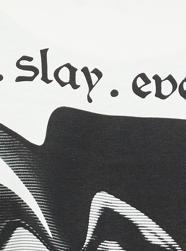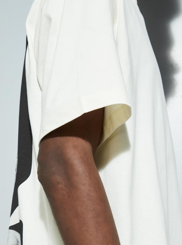 Stay on-trend with this t-shirt featuring a graphic print at the back and a placement print on the front. Designed with a crew neck, short sleeves, and an oversized profile, this tee effortlessly elevates your weekend look.