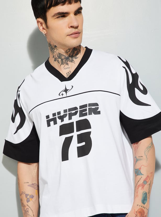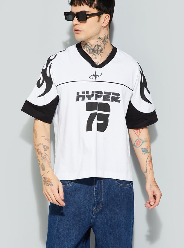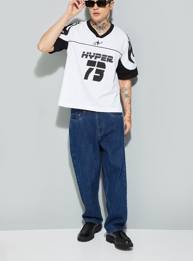 Step into effortless style with this printed boxy fit T-shirt. Featuring a classic v- neck and half sleeves, it delivers a relaxed silhouette with a bold print that adds personality. The boxy fit ensures comfort and a modern streetwear vibe, making it a versatile staple for casual looks.