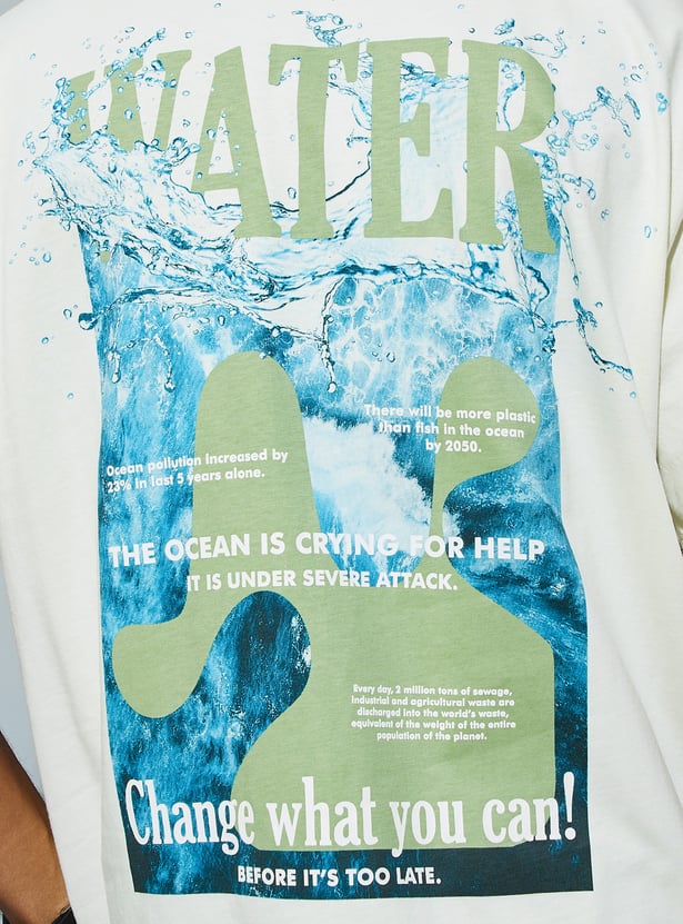 Perfect for casual outings or chill days at home, this oversized t-shirt features half sleeves and a crew neck bold with a print on the front and a striking back print for an extra dose of style.