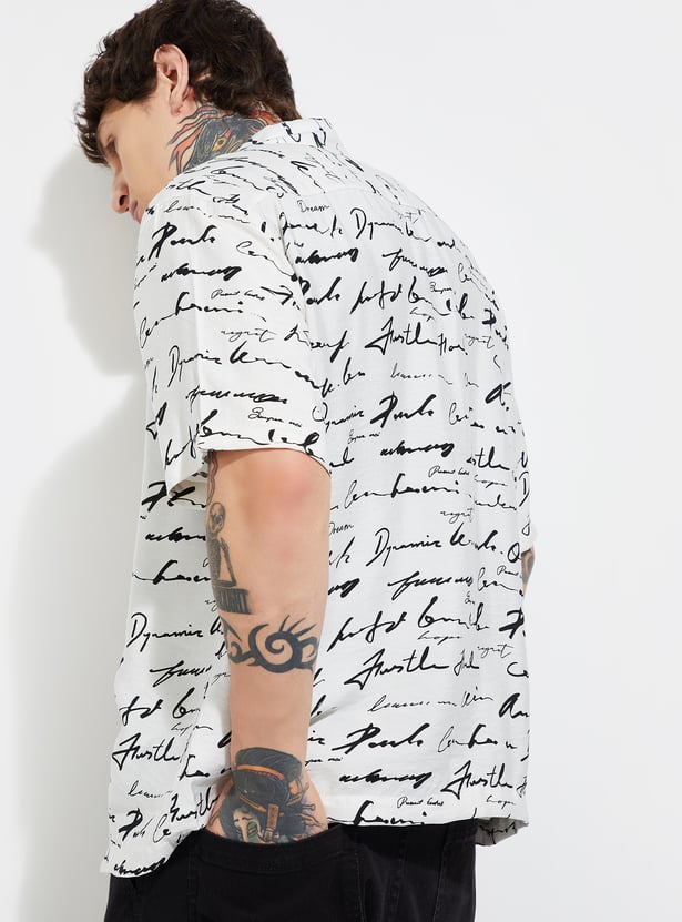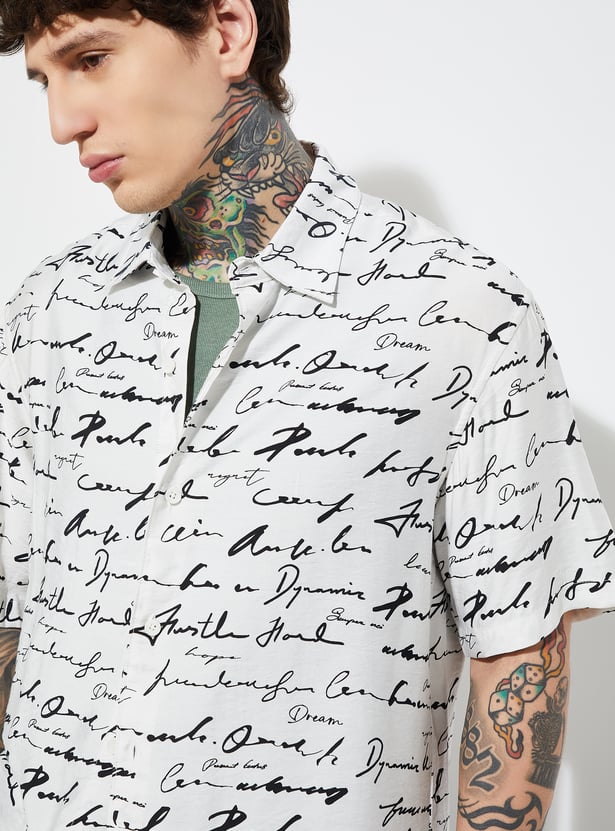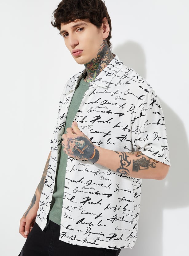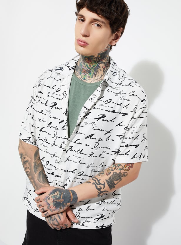 Stay cool and casual in this printed relaxed fit shirt. Featuring a spread collar, button placket, and half sleeves, it offers a breezy silhouette perfect for laid-back days.