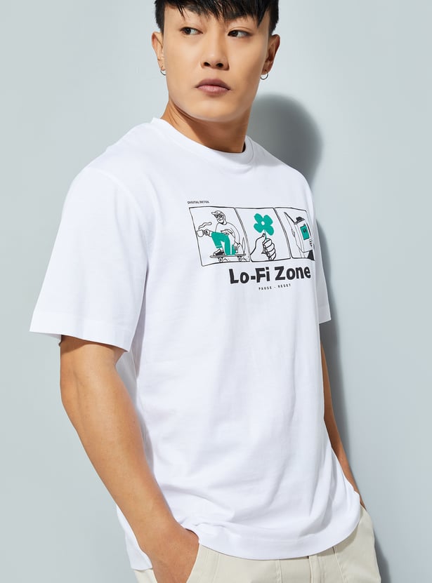 Keep it cool and casual with this printed T-shirt, designed for everyday ease. Featuring a classic crew neck, half sleeves, and a bold chest print, it adds just the right amount of edge to your look. The regular fit ensures all-day comfort and versatility.