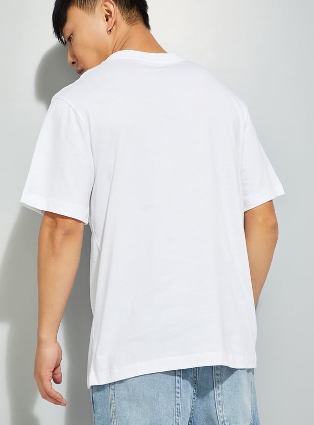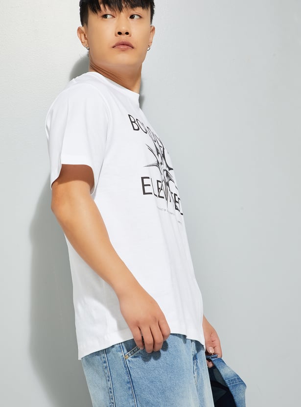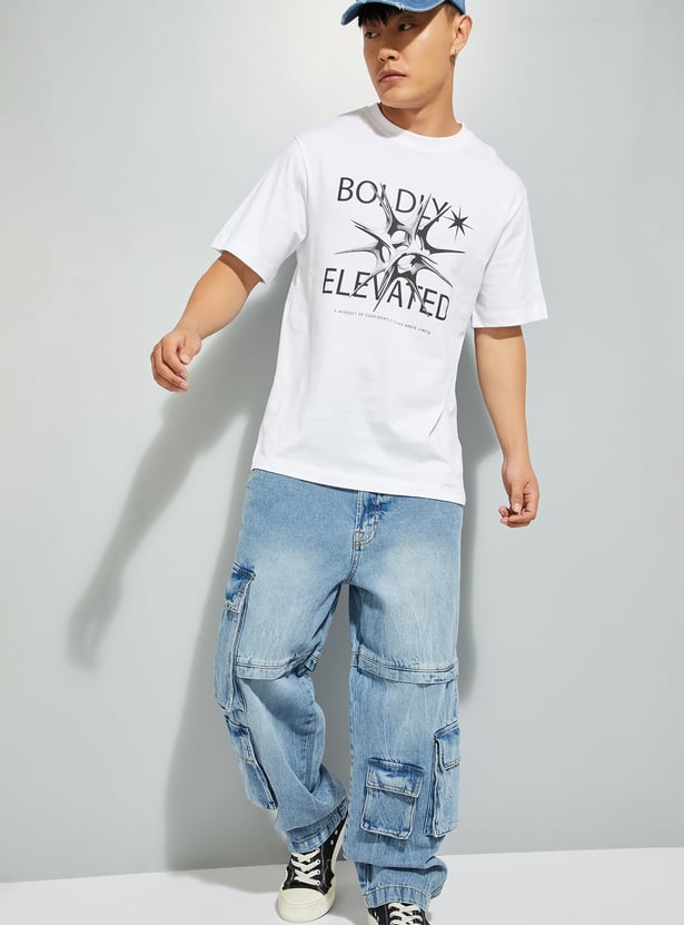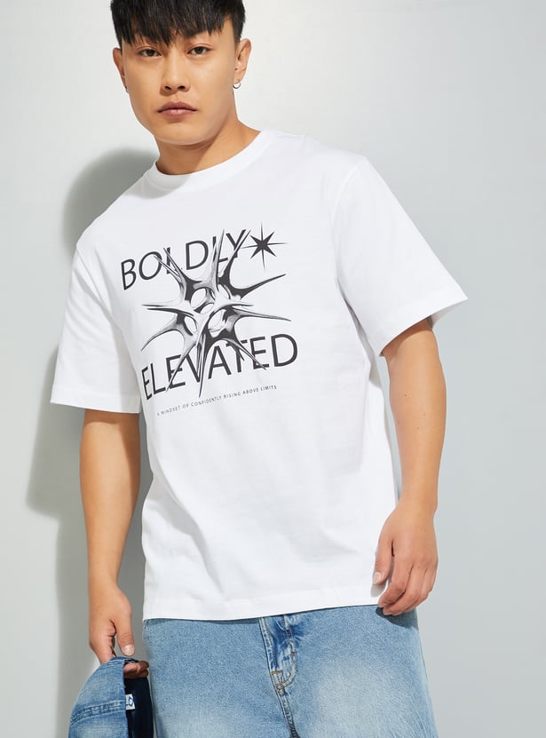 This T-shirt is a versatile addition to your wardrobe. Featuring a bold printed design, it adds a touch of modern style. The crew-neck and half sleeves ensure a comfortable fit.