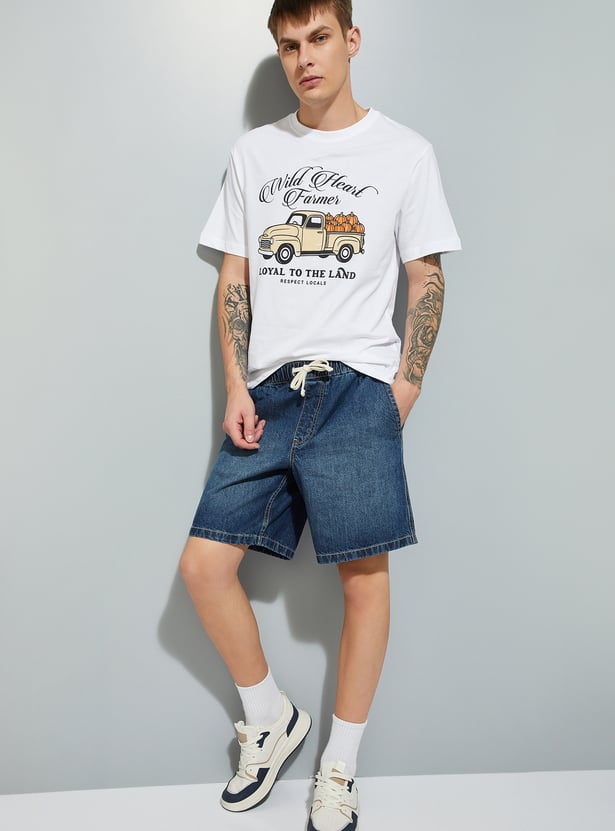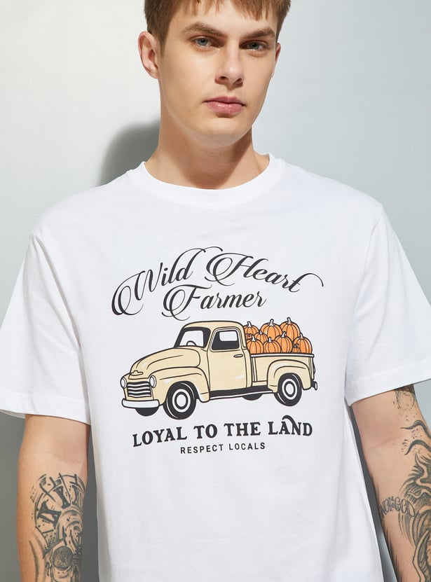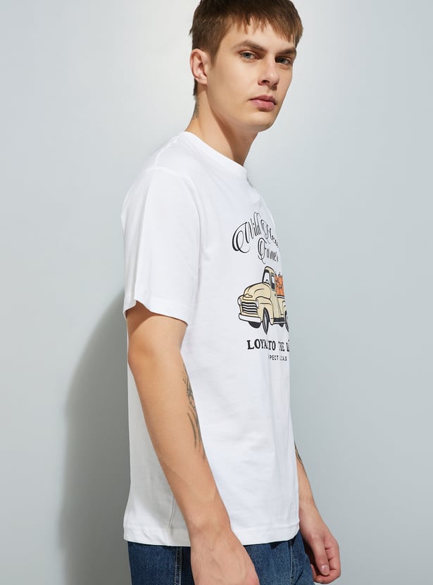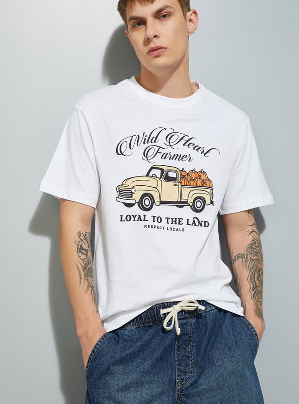 Bring main character energy to your day with this T-shirt. Designed with a classic crew neck and half sleeves, it features a bold front print that brings effortless street-style appeal to your casual rotation.
