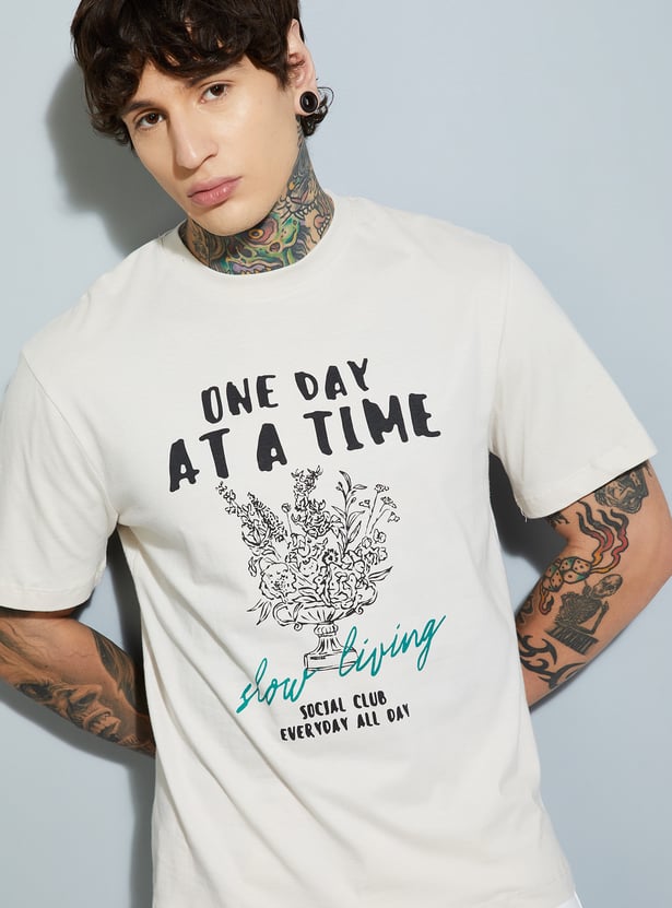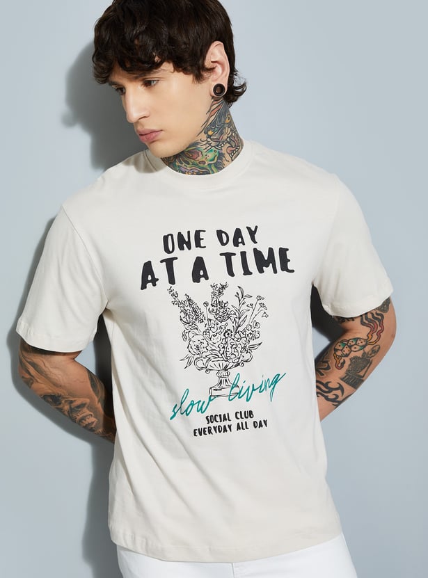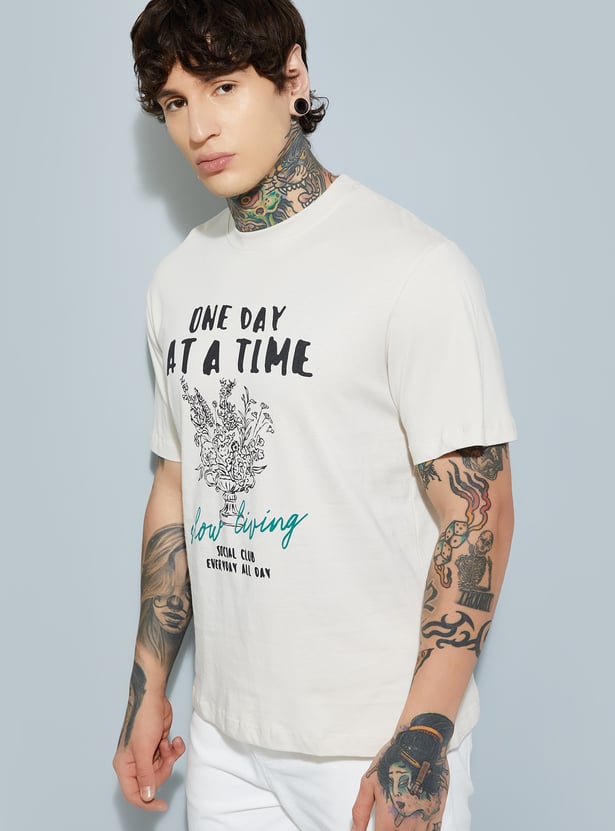 Elevate your casual wardrobe with this printed T-shirt. Featuring a classic crew neck and half sleeves, it delivers comfort and effortless everyday style.