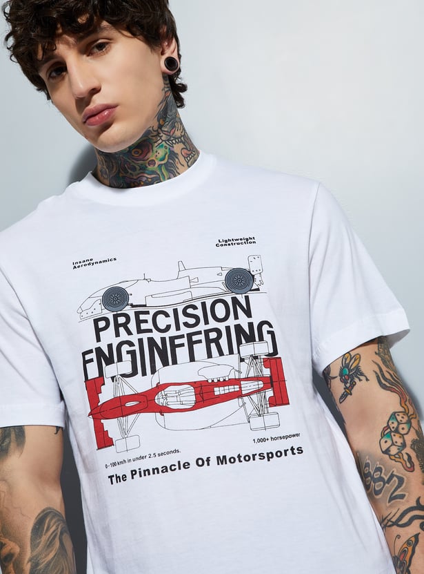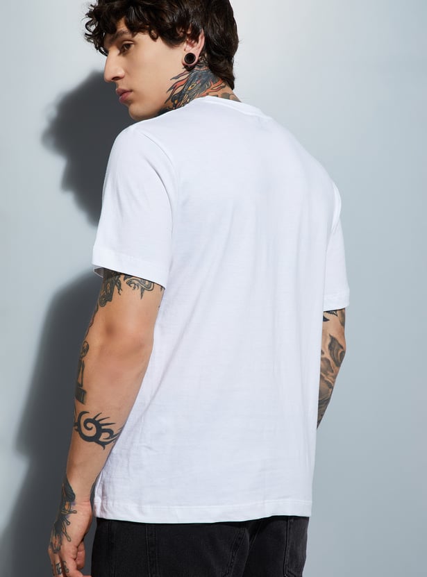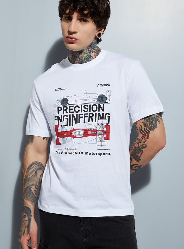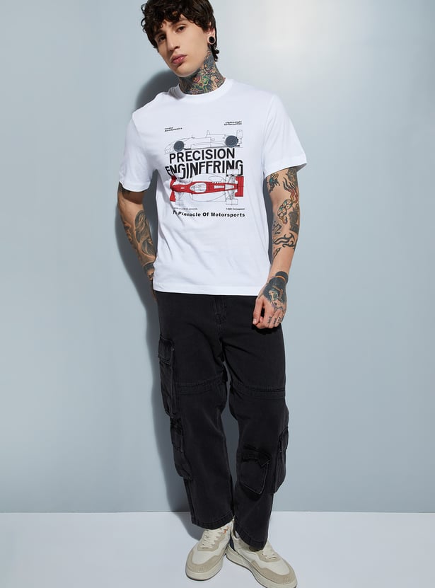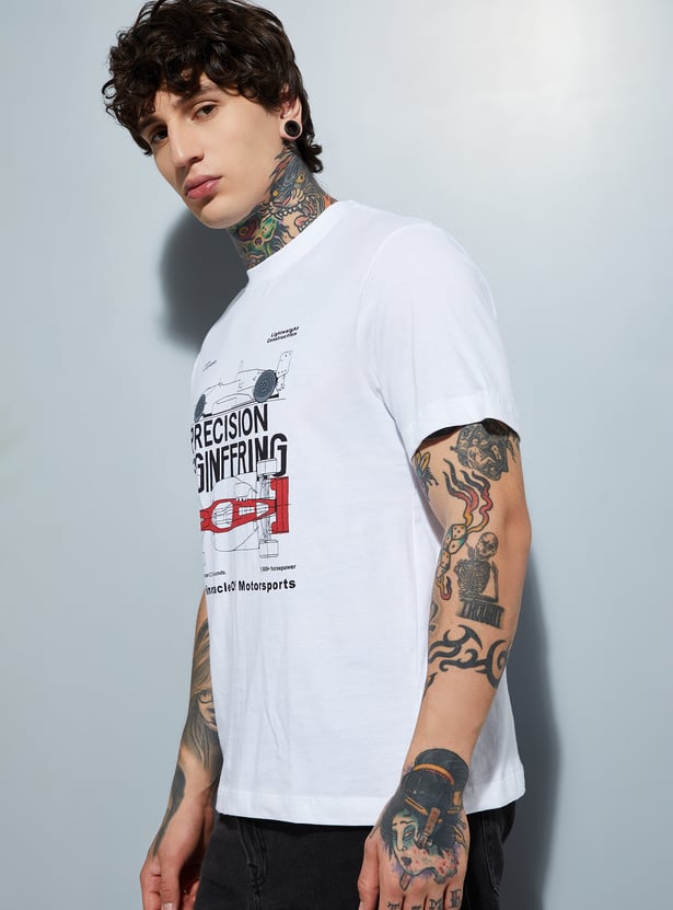 Make a statement with this back print T-shirt, featuring a crew neck and half sleeves for a relaxed, comfortable fit. Perfect for casual, everyday style.