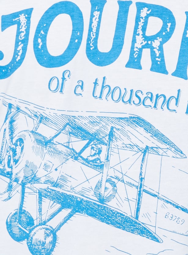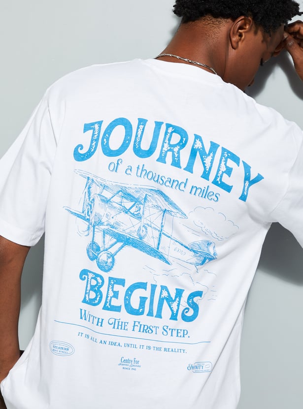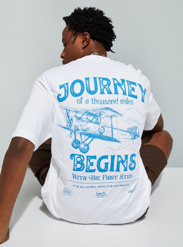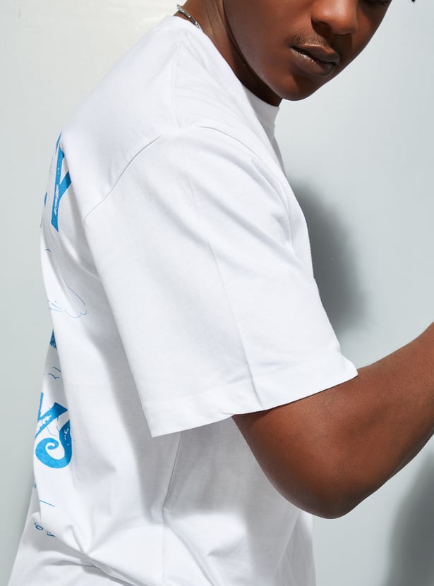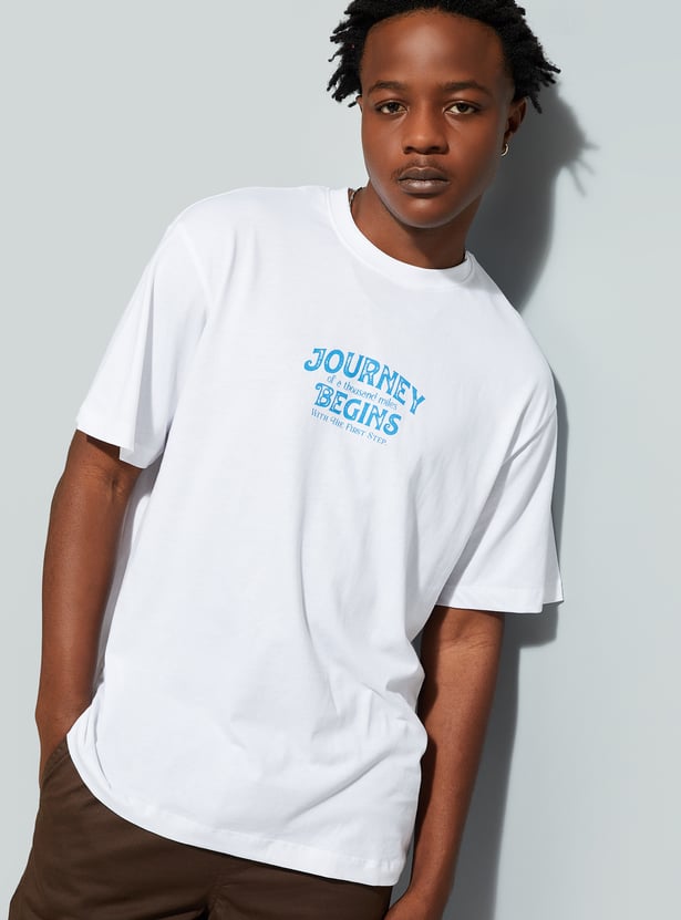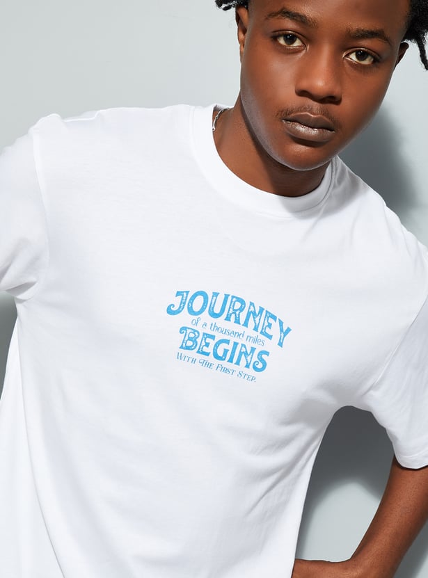 Upgrade your street style with this T-shirt, designed with a classic crew neck and half sleeves. The standout typography at the back and front creates a perfect blend of laid-back vibes and urban flair. The relaxed fit provides roomy comfort.